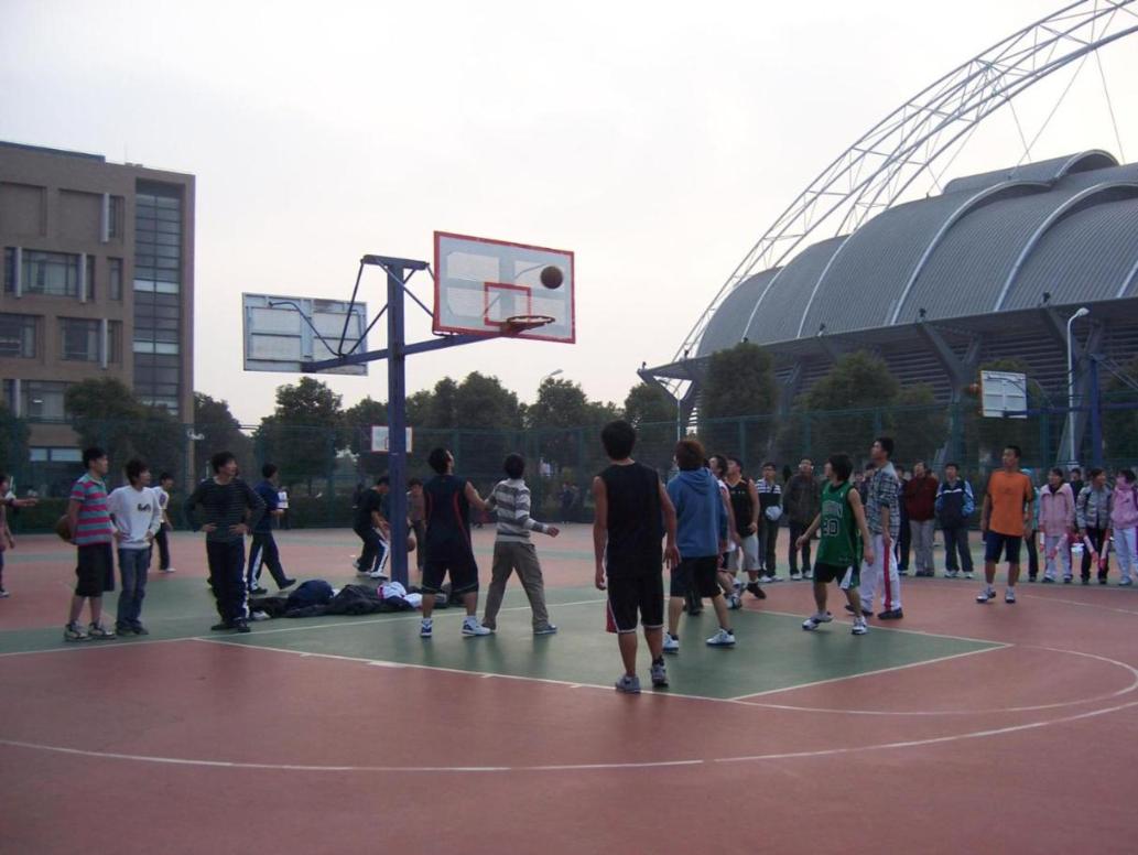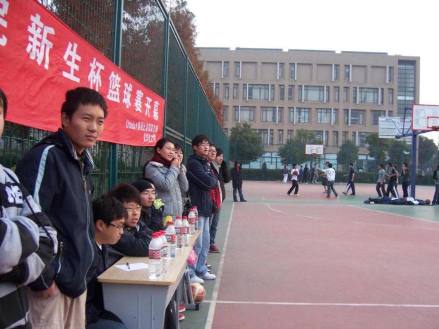 这几天阴冷的天气似乎没有影响到参赛队员及场边观众的热情。比赛还未开始,队员们都换好球衣,在篮球场上热身起来,一旁的拉拉队也凝神屏息等待比赛的开始。为了体现本届比赛的“共聚”精神,体育部部长张醒羽同学还在赛前组织双方队员合影留念。
