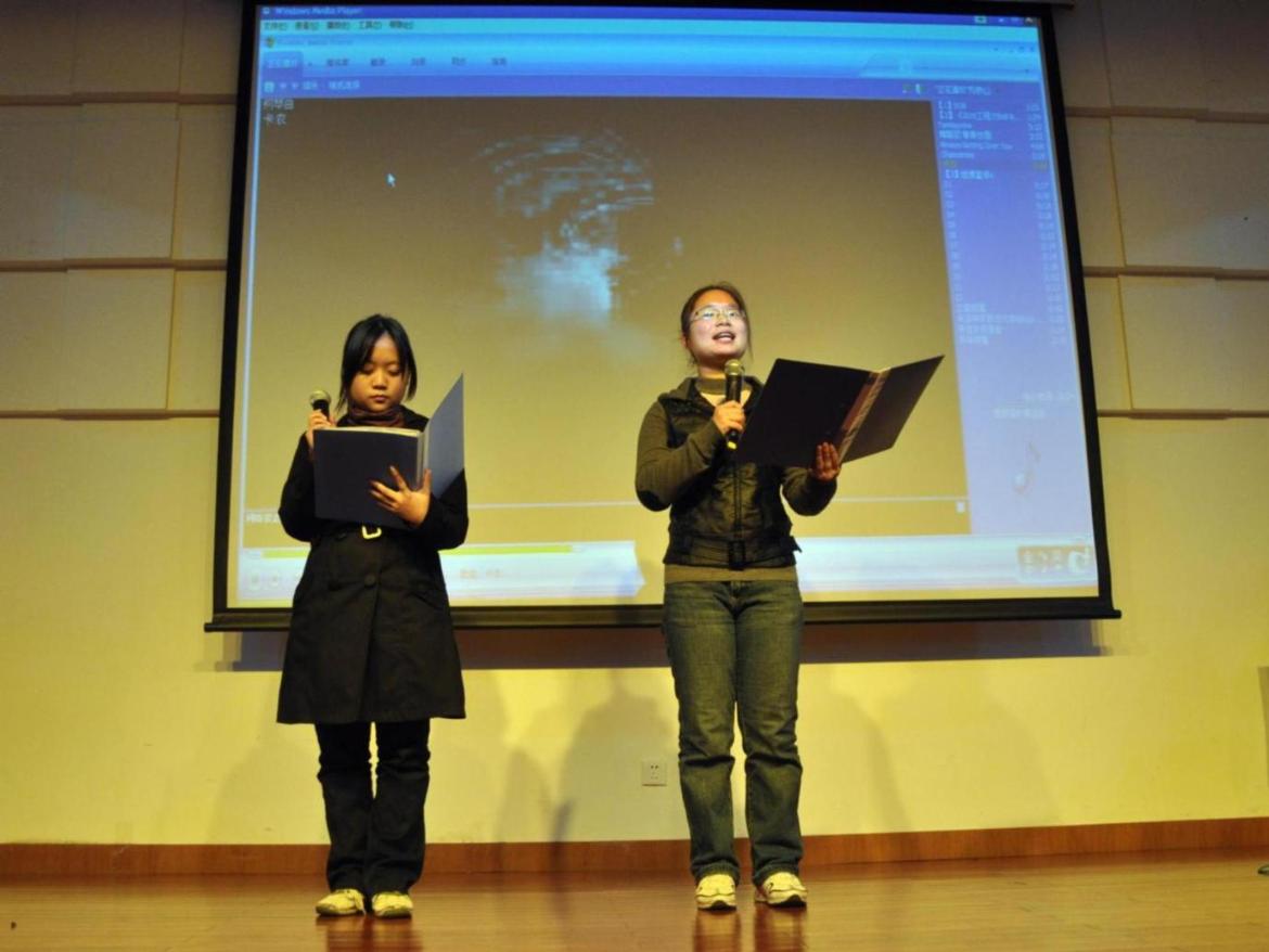 晚会由激情的舞蹈《请到这里来》、广播台成员的串烧作品——校园民谣《且听凤吟》和台长王培带来的吉他弹唱《say it possible》拉开序幕。仅开场舞和开场曲就着实让现场high了起来。晚会的节目丰富多彩,有朗诵《新新上海人》、世博知识问答、小品《魔之椅》、街舞和互动游戏,其中上海艺声嘉宾长安也被主持人邀请至台上发表感言,现场气氛被一次又一次地推向了高潮。整个晚会最与 众不同的是串起这个晚会节目和活动的报幕人员并非主持人,而是播音员,这又正体现了这个晚会的主题“六十年广播之语,六年广播之声”,如你闭上眼睛,这个美妙而又动听的播音声,便会让你感到自己犹如真的坐在收音机旁,享受着广播电台带来的独特魅力。晚会最后,历届台长、台员纷纷上台发表感言,并全体合唱《我们和未来有约》,晚会也在大合唱中落下帷幕。广播台成立至今六年间,其踏实的工作态度和积极的开拓精神得到了广大学生和老师的认可和好评,为丰富校园文化生活做出了突出的贡献。值此六周年台庆之际,广播台成员纷纷表示将坚持踏实认真的工作作风,继往开来,做出更加优秀的节目,更好的为学生服务。 | |