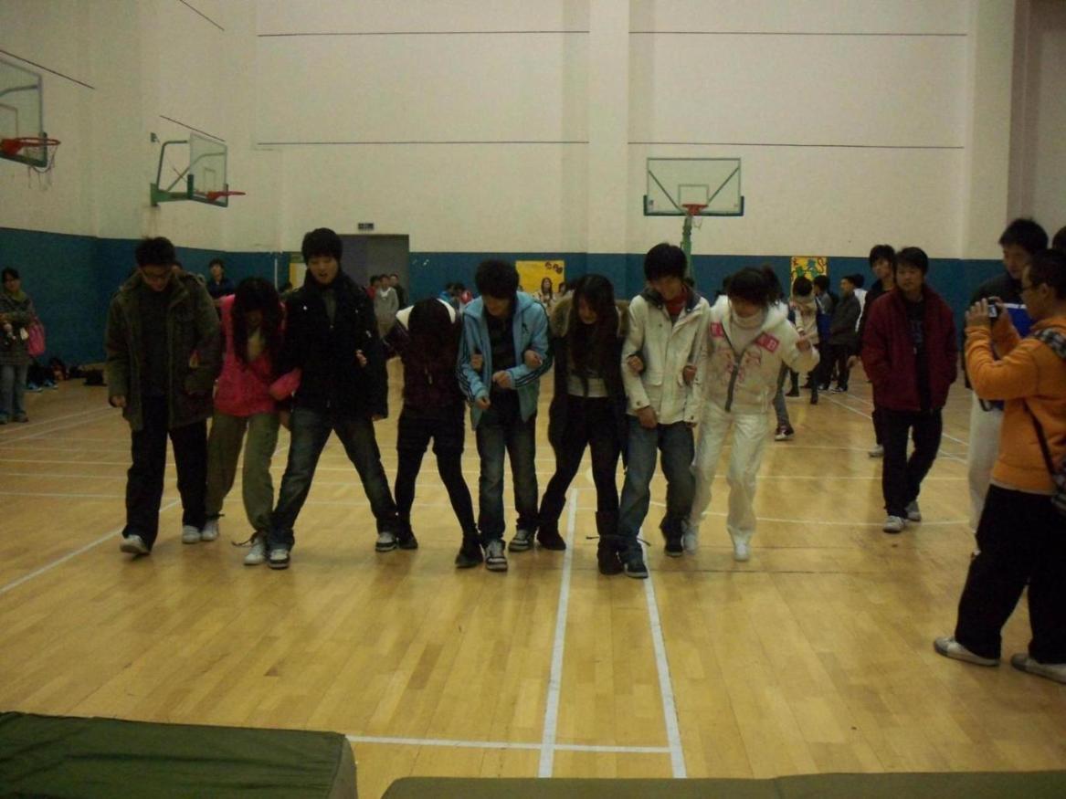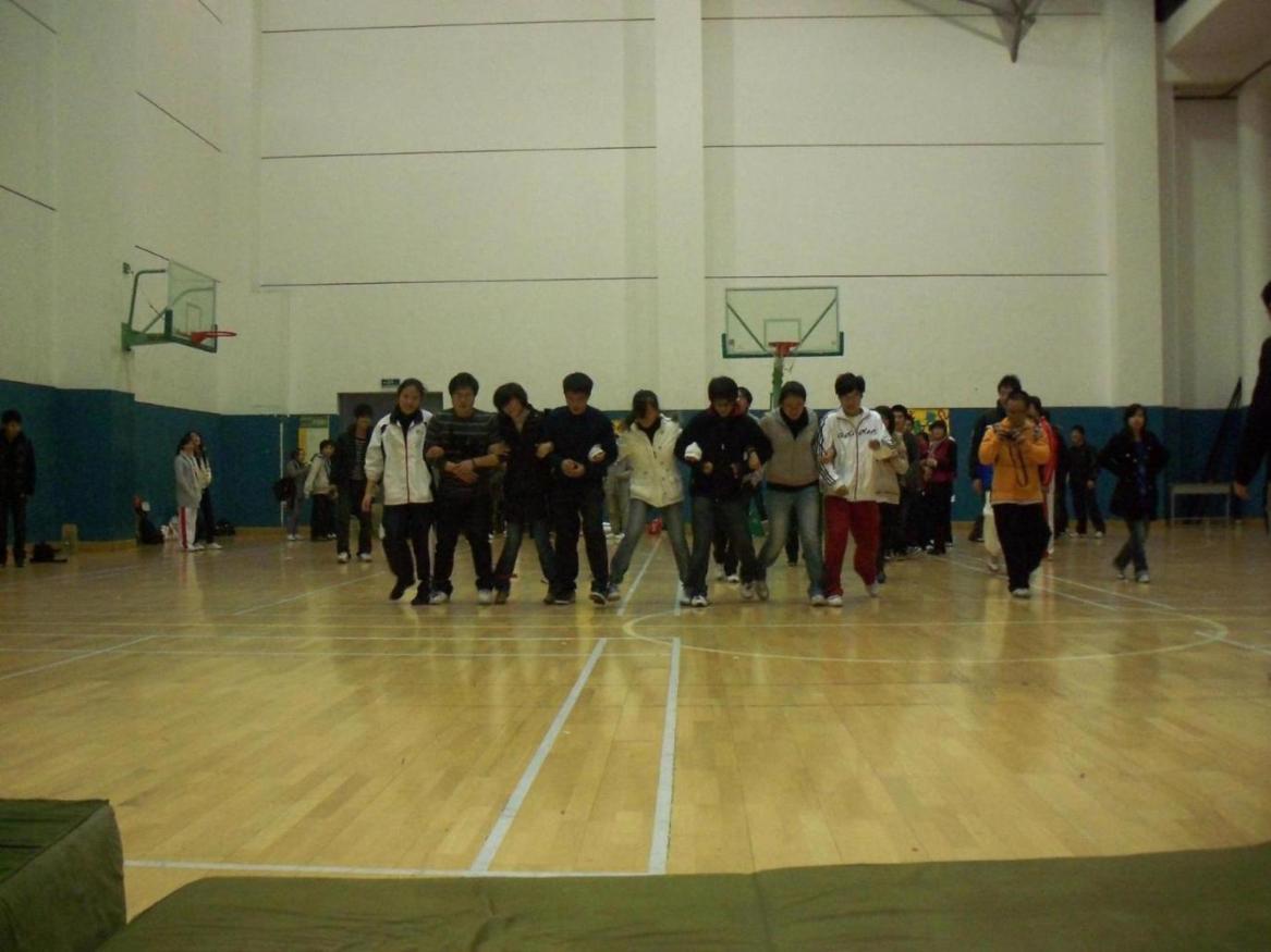 比赛大约在19:30正式开始,狭路相逢勇者胜,尽管有些队伍由于配合时间不长而不太熟练,但他们每个队员都以集体为重,一起一步一个脚印,迈着步伐到达了终点。当然,比赛中也有团队配合十分默契,在一声声响亮地口号的带动下,八人手挽手,脚踩着紧凑的节奏,笔直地向着胜利的前方奔去。对!他们是奔过去的! 他们就是用时最短的参赛队伍——获得最后胜利的生活部! 在学生会工作之余,通过本次活动,不仅增强学生会各部门的凝聚力与团队归属感,促进了部门与部门间的友谊,并向全校师生显示校学生会将用无限朝气与热情全心全意为我校广大学生服务。 本届体育节即将结束,然而我校学生那种团结奋进,努力拼搏的精神,青春活力的运动风貌,将为丰富的校园生活更添一抹亮笔。 | |