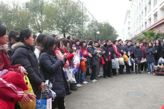 仪式首先由市教委后勤组领导和我校宿管部相关老师对本次慈善活动作了详细的讲解,同时对我校全体师生给予了很大的希望。接着,伴随着大家热烈的掌声,双方代表各自怀着激动的心情为慈善捐献箱揭幕。揭幕仪式在闪光灯下定格,大家奉献爱心的路却刚刚开始。最后,各楼层长纷纷把自己准备好的衣服、书本等物轻轻的放进捐物箱,每一件都是一份爱心。
