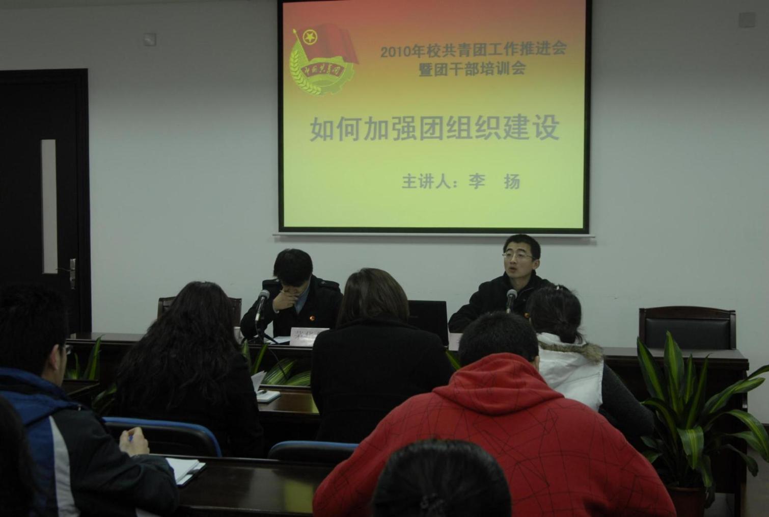 | 2月27日上午9:00至下午17:00,在行政楼楼205会议室,2010年校团委工作推进会暨团干部培训会继续举行。今天共设四场讲座,分别是:世博志愿者工作专题培训、校院学生会工作交流、如何加强团组织建设、如何做好职业生涯规划。
