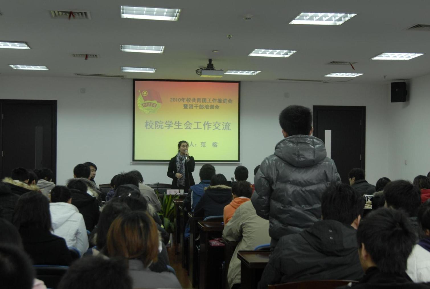 第二场讲座,由团委副书记范榕老师主持了校院学生会进行工作交流。范榕老师在新的一年为同学提出了新的期望。她提出团干部应当有其气质、信念、工作能力、人脉关系、调研与思考以及洞察力。同时范榕老师还强调在新的学期除了常规活动还要突出各个学院的特色活动,以形成各个学院独特的风格。