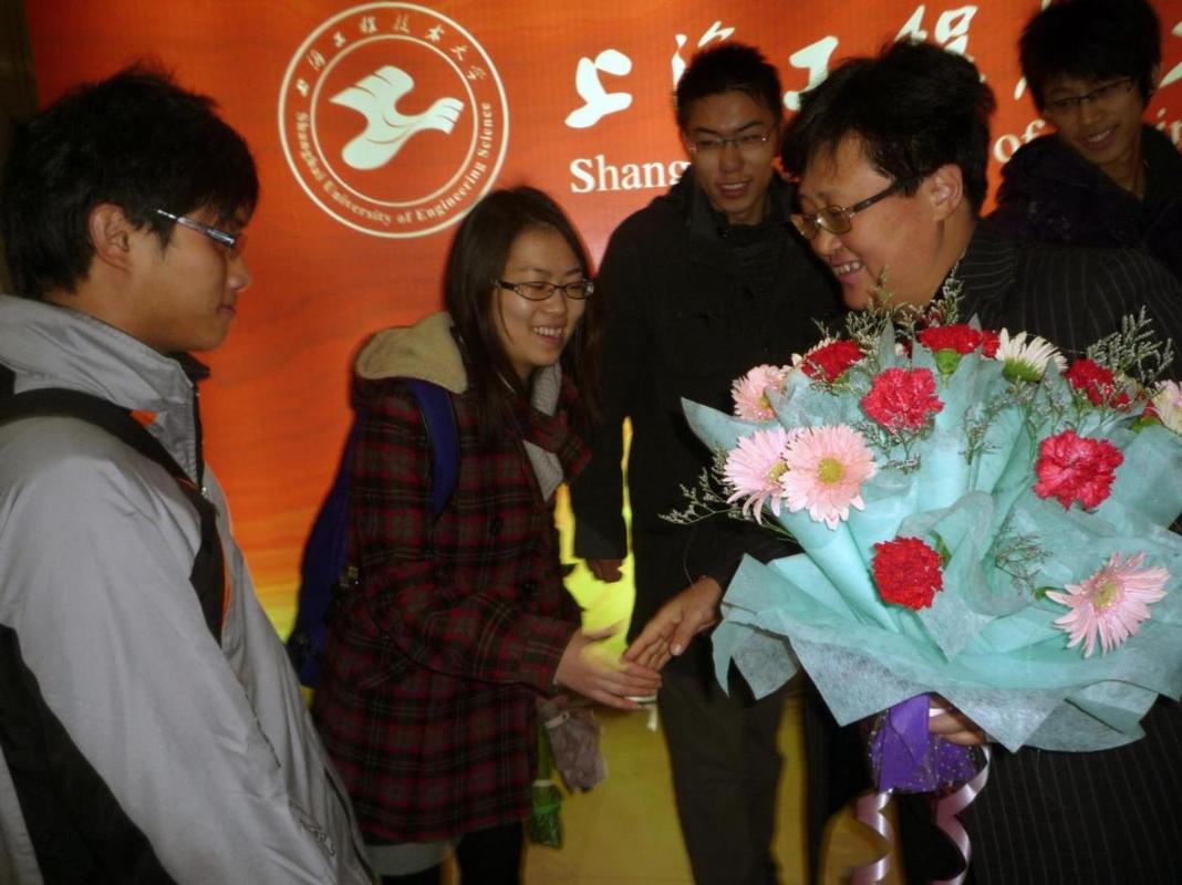 每次的“三·八妇女节”汽车工程学院的学生们都会很用心地去准备,此次不仅向汪校长送上了准备好的鲜花,同时还呈上了一幅由汽车工程学院同学们一起亲手绘制的汪校长的画像,并且祝愿校长工作顺利,身体健康。汪校长收到礼物后十分感动,和同学们亲切地逐个握手,还与同学们合了影。 与校长道了别,同学们又来到汽车工程学院老师办公室前进,向女性老师们逐个送上康乃馨,同样也为她们送去了节日的祝福。 为校长和女老师们送上妇女节礼物是汽车工程学院的妇女节传统,延续了很多年,希望汽车工程学院在校长的激励下能够越办越好,为大家送上更好的“厚礼”。