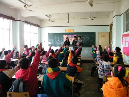 本次支教活动共包括两部分,其中12名支教组成员分别进入4个班级进行植树节主题课的教学。志愿者们介绍了植树节的起源与发展,强调了现如今保护环境的重要性,并且详细阐述了2010年绿色环保的世博理念。同学们积极踊跃发言,课堂气氛十分融洽。最后,大家在树叶形状的便利贴上写下了自己对上海世博会的祝福,一棵棵“世博小树”孕育而生,饱含了同学们童真而真挚的情意。