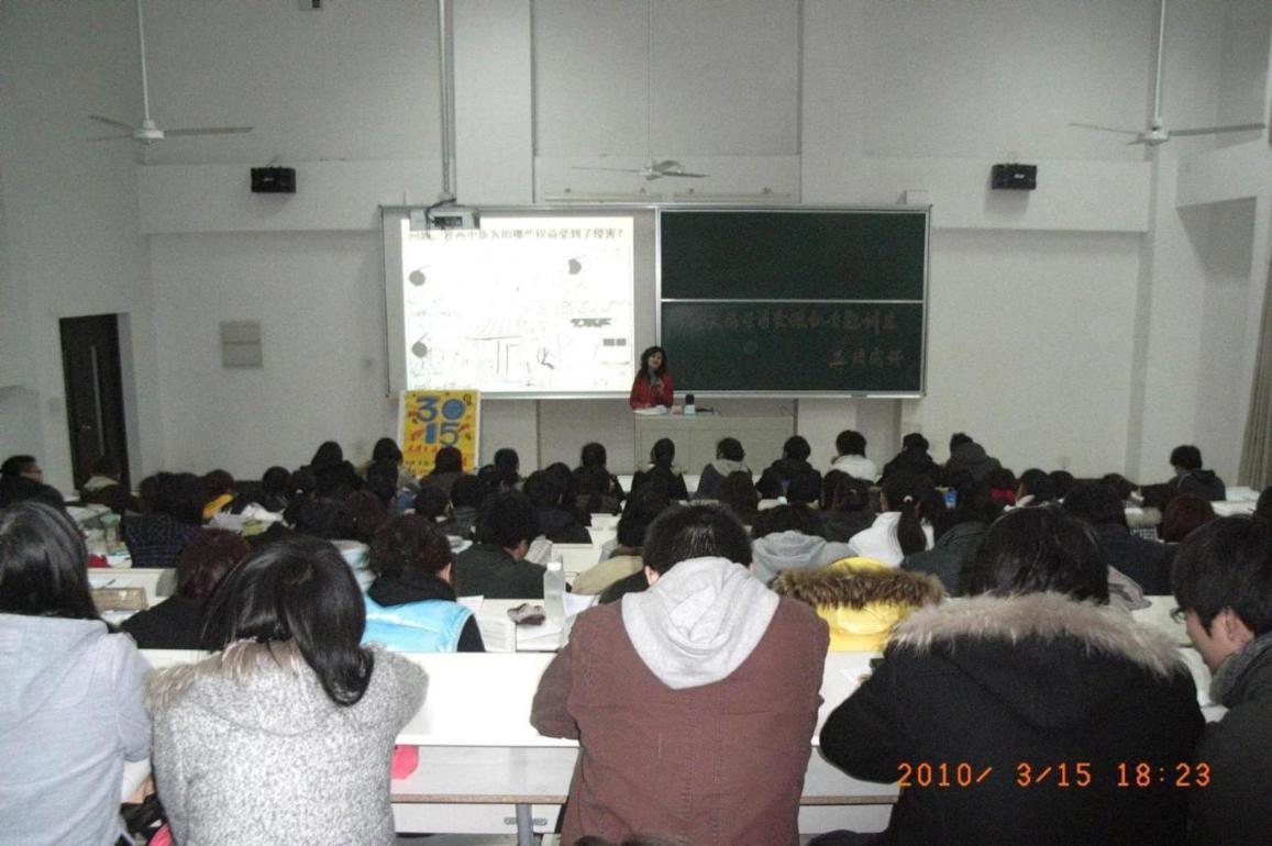 3月15日18:00,校生活部在A315举行了关于大学生消费维权专题讲座。讲座由社会科学学院的王洁老师主讲,王老师平时对法律、经济颇有研究,对法律经济感兴趣的各院系同学参加了本次讲座。 校生活部 | |