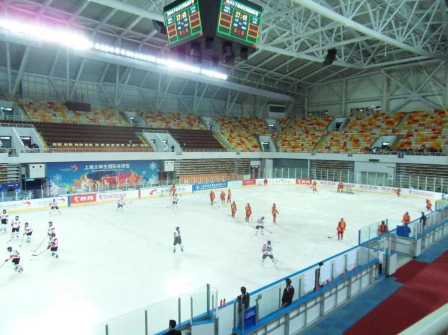 比赛场上,每次进攻都会引起全场轰动,中国队进攻时,同学们连声高呼:中国队,加油!日本队进攻时大家也以掌声表示鼓励。第一场比赛中,中国队25号球员与对方球员相撞,摔倒在地,医护人员马上进场进行身体检查,所幸无碍,当25号球员在队友搀扶出场休息时,全场爆发热烈掌声,虽然全场温度有点低,但大家为中国队加油的热情丝毫不减。第三场,电子电气工程学院的同学挥院旗呐喊,大家纷纷起立为中国队加油,比赛跌宕起伏。 为期四天的2010女子冰球亚洲挑战杯赛圆满结束,电子电气工程学院学生当场表示,学院组织此次团组织生活,不仅丰富了大家的课外生活,而且增进了同学们对冰球运动的了解,激发了同学们的爱国热情,这是一场珍贵的爱国主义教育活动。 | |