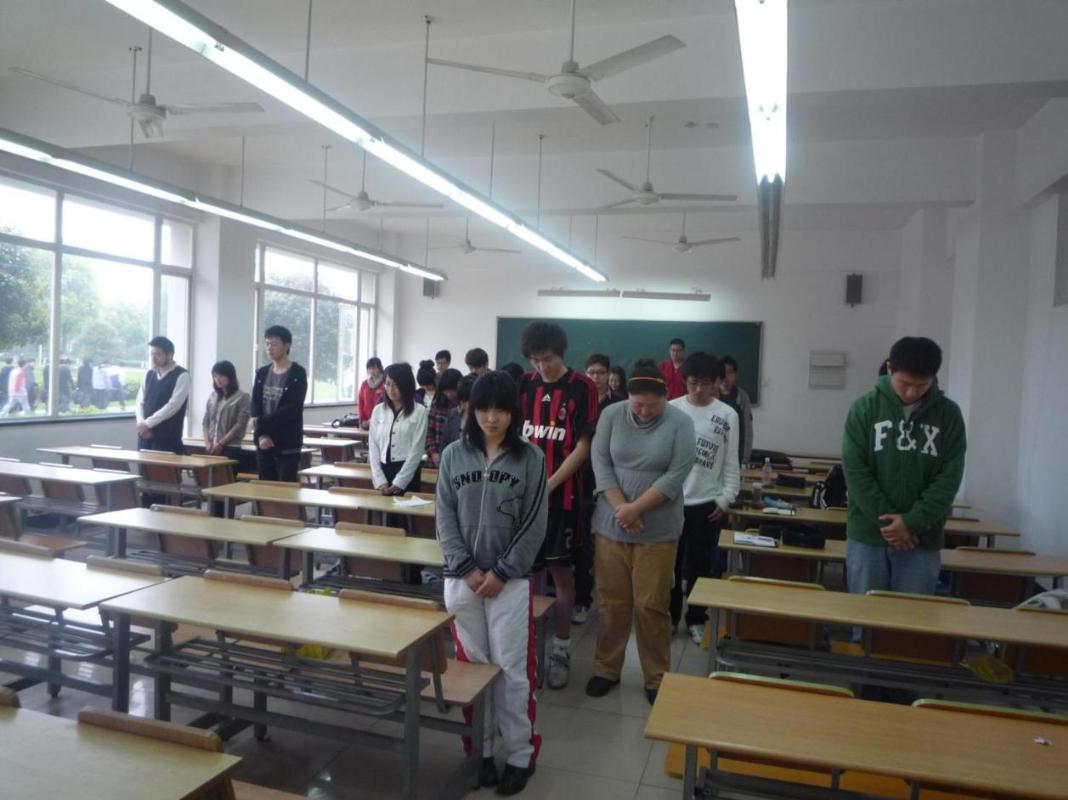 4月21日,举国哀悼玉树受难百姓。汽车工程学院团学联也自发组织了默哀仪式,寄托对逝者的思念之情。 正午12:00,汽车工程学院团学联全体学生干部在学院党总支副书记段海霞、分团委书记虞抒叶的带领下,于教学楼B106举行了哀悼仪式,集体默哀3分钟,寄托自己对在玉树地震中逝去同胞们的哀思。 稿件作者:陆承良责任编辑:陈文琼