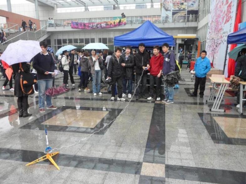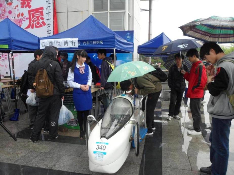 淅淅沥沥的小雨下了整个上午,为活动的展开带来了诸多不便。但在开幕式之后,同学们热情高涨,在展区显示了无尽的求知欲望。汽车学院为这次开幕式做了精心的准备,向大家展示了自己制作的火箭模型发射升空的过程,还特意从五号实训楼请出了重量级嘉宾——汽车学院同学研发的节能车,成为了会场独一无二的亮点。