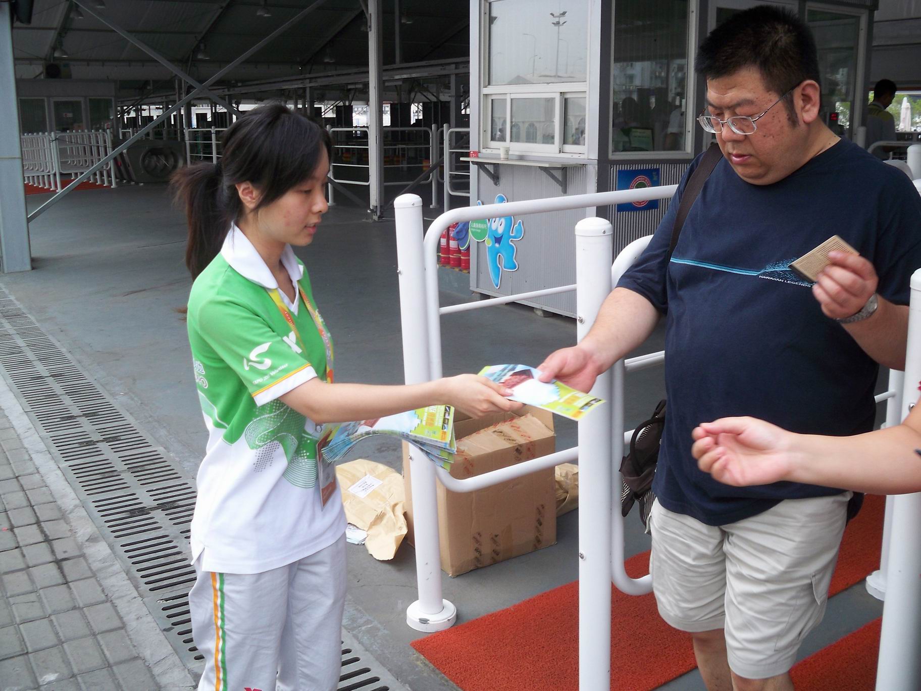 游客的热情难却,志愿者的服务也要周到。作为园区第一岗的西藏南路票务口的志愿者们,做了小告示牌、简易地图让前来购票的游客能够更清楚地知道买票处和附近便利店、特许商店的位置。 针对下午班,买夜票的游客较多且都是以家庭为单位购票,票务中心的志愿者还想了一句口号“全家买票一个人排队就可以了”用这种方式让家庭购票的游客可以减轻排队的负担,可以让家里的老人和孩子在旁边休息,这样的举动让游客感到很舒心,同时他们也积极配合我们志愿者的工作。 汽车学院票务中心志愿者的服务让票务中心的游客享受到游园前的温馨和热情,也得到了票务主管的称赞。 服务在园区的第一岗,票务中心的志愿者们,加油! | |