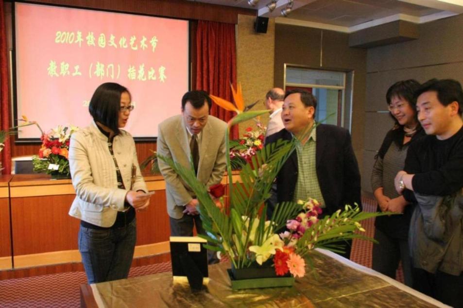 此次插花比赛是高职学院2010年文化艺术节13个项目中的压轴戏,各部门都为之进行了精心的准备,挑选了优秀的选手,根据不少插花的样品照片,做了精心的构思,准备了独具特色的主题。各部门的党政负责人还亲临现场督赛鼓劲,每当一个作品完成,全场都会发出一片惊叹和赞美。经过一番激烈的比拼和四位评委集体打分,教一党支部卞伟华老师主创的《逐梦》以简洁高雅的美观形态、主题突出的巧妙构思和合适的选料一举夺冠。