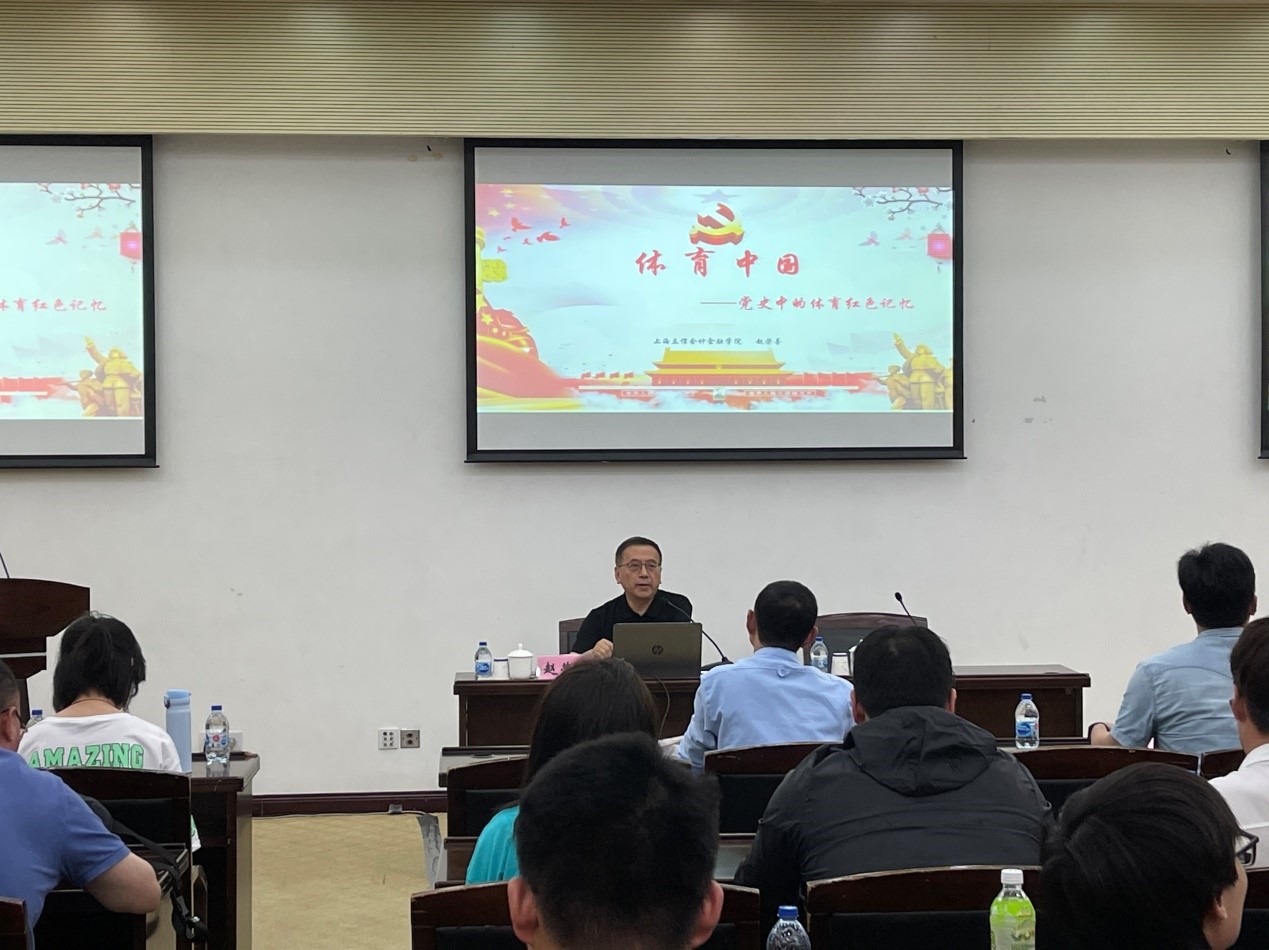 为深入推进党史学习教育,5月14日下午,体育教学部党总支邀请上海立信会计金融学院副校长赵荣善,在图文信息中心第三报告厅为全体教师党员和体育总会党员学生代表上党课。