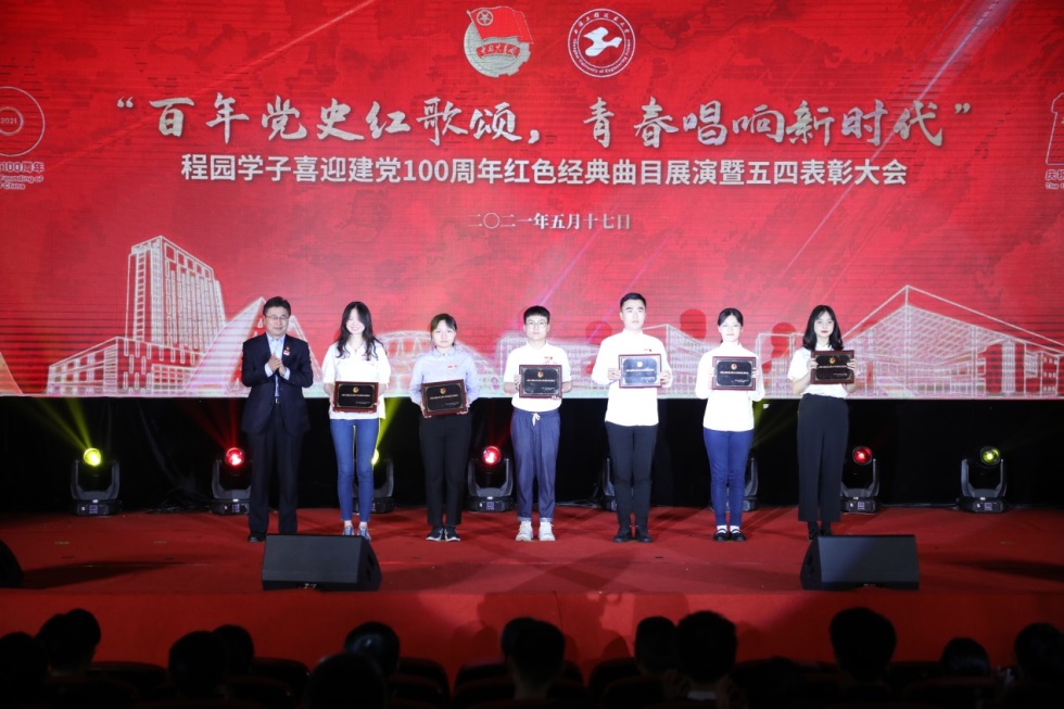 5月17日下午,校团委在图文信息中心志宏堂举行“百年党史红歌颂,青春唱响新时代” 程园学子喜迎建党100周年红色经典曲目展演暨五四表彰大会。校领导俞涛、史健勇、门妍萍、朱晓青、姚秀平、王岩松、夏春明出席活动。相关职能部处负责人、师生代表共计650余人参加活动。