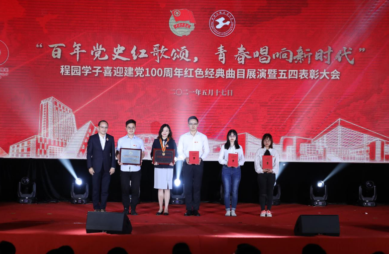 表彰大会在激昂奋进的《没有共产党就没有新中国》歌声中结束了,工程大共青团将继续弘扬五四精神,服务基层、创新发展,工程大青年将携手在新时代追逐青春梦想,镌刻青春印记,与新时代同向同行、共同前进。