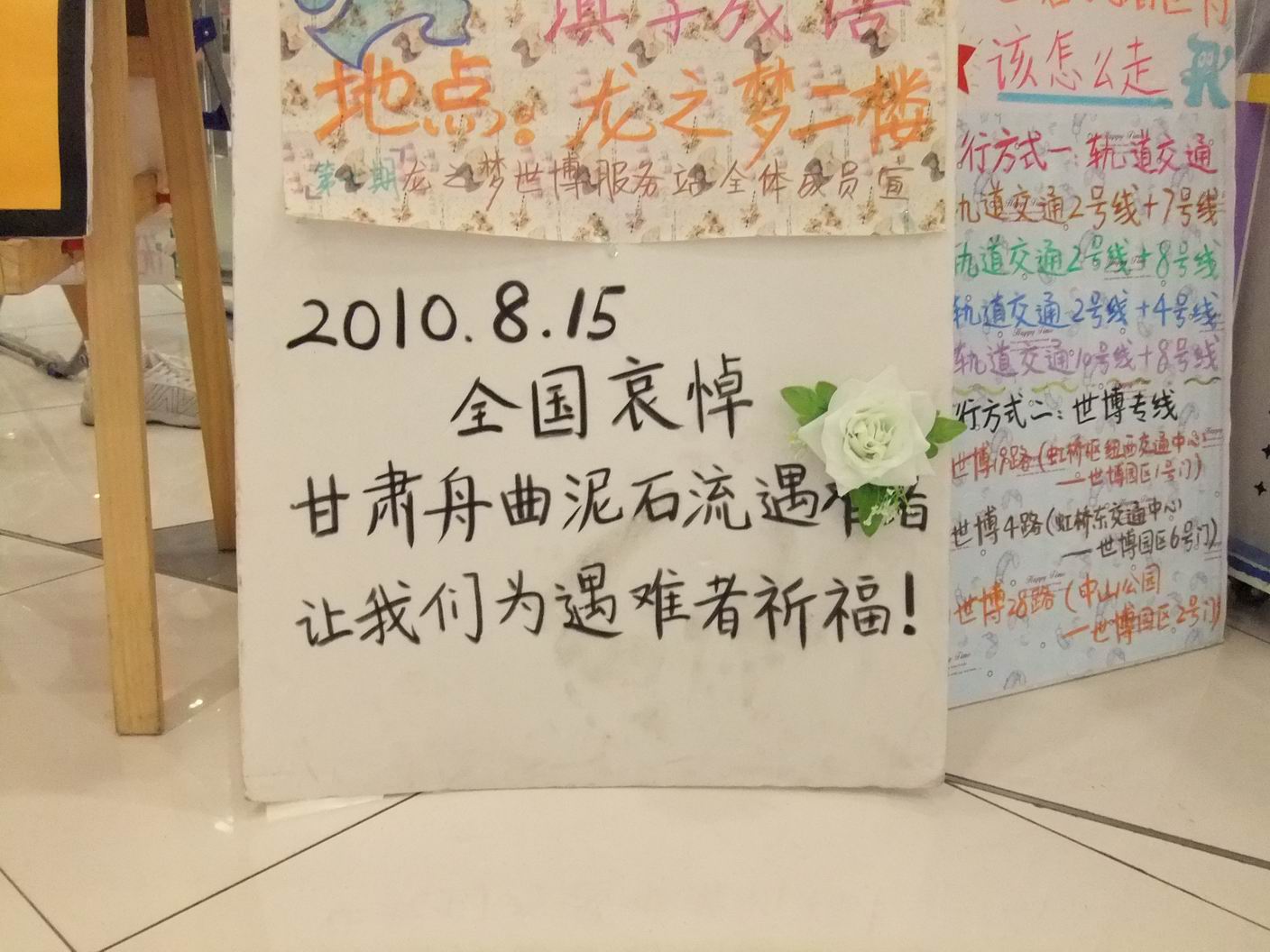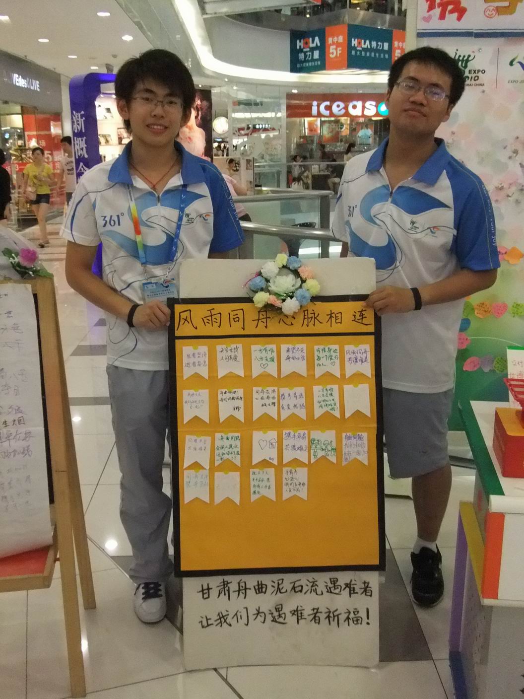 |  8月16日,世博志愿者城市站点,长宁区龙之梦购物中心站,举行了“携手七夕添彩世博”的主题活动。活动借以七夕的浪漫色彩来引领大家认识世博,参与世博,但一场突如其来的泥石流使得这个七夕分外沉重。 已经准备5天的活动于今日收尾,早班的志愿者在下午2点前工作基本结束,至晚班的志愿者到岗,活动就绪,来者还有其他站点及机动志愿者3名作为监督及照相等配合工作,活动于当日15点准时开始。 活动开始前首先为灾区人民默哀,为灾区人民祈愿,在场的每一个人默默地矗立着,一言不发。之后在站长蒋老师,王老师的带领下“填字成语”“有奖问答”“风雨同’舟’ ”3项活动同时进行,活动安排严谨周密,人们参与活动井井有条。9名志愿者左右呼应,两位老师妥当安排,写成语的志愿者手中的笔明显不够,写成语的面板确实太小,只是场地原因,活动确实有些无奈;问答区的志愿者来往奔波,答题的人们更是用尽了浑身解数;祈愿板上,淡淡的花圈,整齐的纸片,沉痛的哀悼,默默的祝愿……志愿者的汗水洒在站点的每一个角落里,人们的心愿融化在龙之梦的每一次的呼吸中。当奖品翻新了一次又一次,活动也在一种淡淡的静默中宣告结束。  有些人说这是一个不一样的七夕,当这样一个甜蜜时刻,舟曲却经历着生离死别、生死未卜。看着每一对情侣又紧紧地搂住对方的胳膊,每一个家庭透露出的温情,逝者如斯,体验过的才懂得珍惜。 一个不一样的世博日,一个不一样的七夕,却让每一个人的心紧紧相连,风雨同“舟”,你我携手共建家园。 |