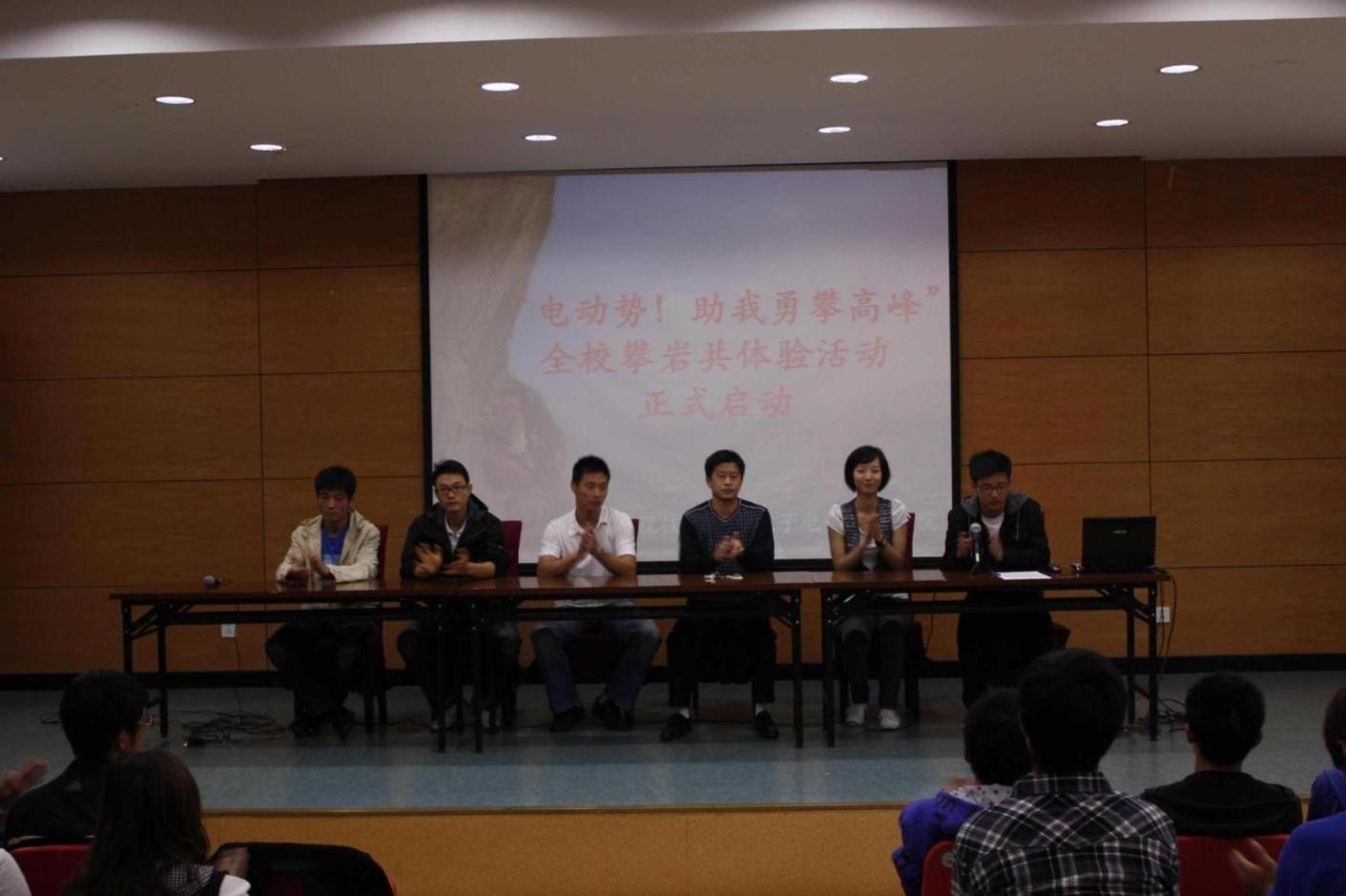 启动仪式由电子电气工程学院学生会文艺部副部长卢凌霄同学主持。会上,朱江华老师提到攀岩被誉为“岩壁上的芭蕾”,有极高的美感和观赏性。此外,他还向大家介绍了北大山鹰社、复旦攀岩协会等国内优秀攀岩团体的经验,使大家对攀岩这项运动有了更深的理解。最后,朱老师祝愿我校攀岩社越办越好。随后,郭浙勇老师进一步介绍攀岩运动,并对我校攀岩社的成立表示祝贺。张纯志同学则结合自身经历向同学们展示了攀岩的魅力与精神,并鼓励大家勇攀高峰、挑战自我。 最后,刘婧峥老师表示,学院与学校社团联合会将全力支持攀岩社活动并宣布“电动势助我勇攀高峰”——上海工程技术大学攀岩体验活动正式启动,她祝愿接下来的攀岩体验活动圆满成功。 | |