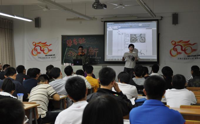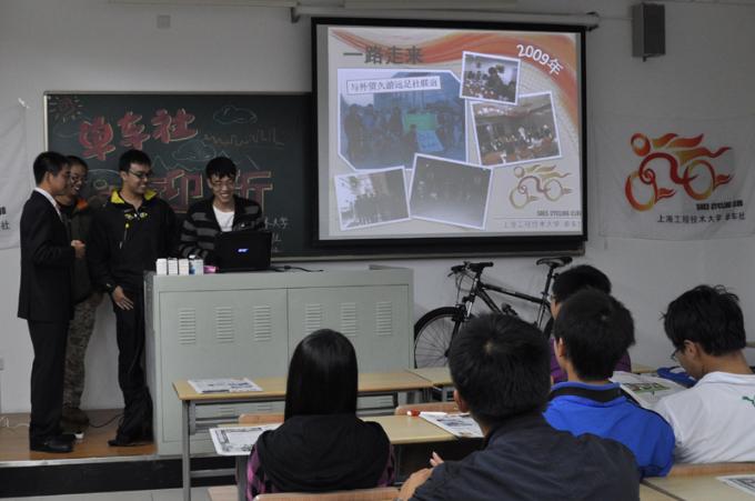 10月14日18:00,工程大单车社在教学楼E310召开了本学期第一次社员大会暨迎新大会。单车社第一任社长曾联,第二任社长朱毅,第三任社长唐飞,上海对外贸易学院久游远足社社长傅伊凡,东华大学自行车协会代表,上海立信会计学院自行车协会代表参加了会议,单车社现任社长曹立翔主持了会议。