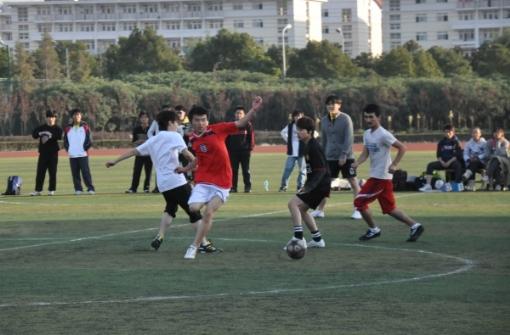 在学院大力号召师生参加体育运动的倡导下,艺术设计学院2010足球对抗赛决赛于11月9日13:00在大操场开赛,由大一新生和学院足球队参赛,艺术设计学院年级辅导员程昭老师前来观赛以示鼓励。 在友好的握手后,两队开始比赛,大一的代表队在开场后有点慢热,没有很快适应比赛的节奏,后卫出现致命失误,院队球员把握住了机会,一记抽射,球划过守门员的手指命中球门死角,比分为0:1。其后比赛进入拉锯战,双方在中场拼抢空前激烈,大一的张继越不慎被对方球员铲伤,对方友好的将其扶下场。但作为球队的进攻核心,张继越同学在经过一番简单的处理后,毅然回归赛场。随后双方交换场地,比赛进入下半场,院队球员进攻火力之大,信心之强,一次次地攻破大一新生的防线,最终以3:0胜出。 双方为在场观赛的师生奉献了一场精彩的比赛,他们顽强的比赛作风以及友好的比赛氛围感染了在场的每一个观众,他们用足球这场视觉盛宴赛出了艺术设计学院的风采,发扬了友谊第一比赛第二的精神。 | |