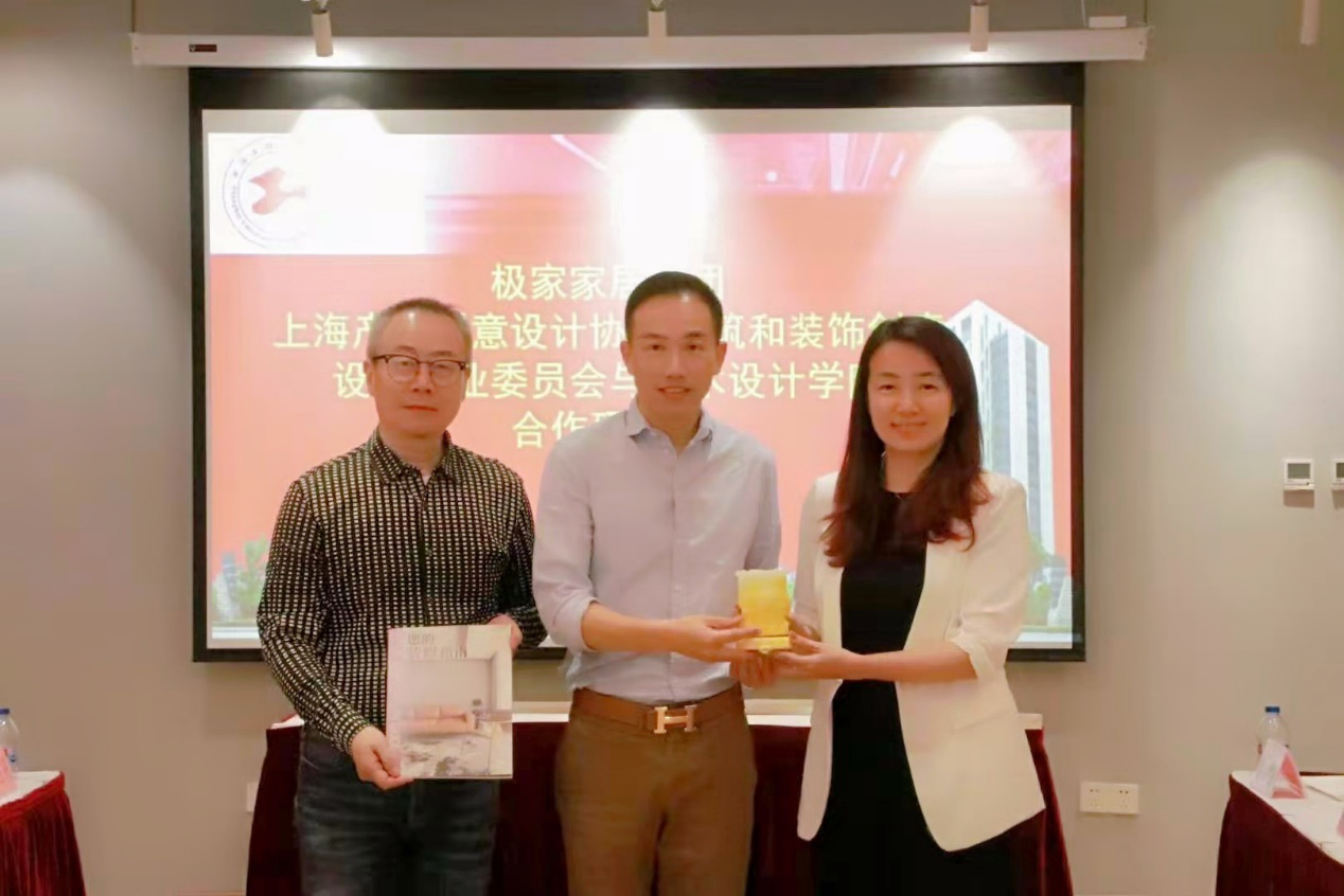 上海极家家居集团任志天总裁简单介绍了极家家居集团发展历程和目前所开展各项业务,并结合智能家居产品、上海家居市场未来发展、共建科技研发中心、后备人才培养等相关问题谈了未来企业与高校的合作意向。上海产业创意设计协会建筑及装饰创意设计专业委员会秘书长刘克在发言中回顾了三方开展合作的历程,再次明确了协会未来将持续搭建高校与企业之间的沟通桥梁,将更多的企业介绍到艺术设计学院来,对接学院各优势专业,为服务上海地方经济发展做出贡献。