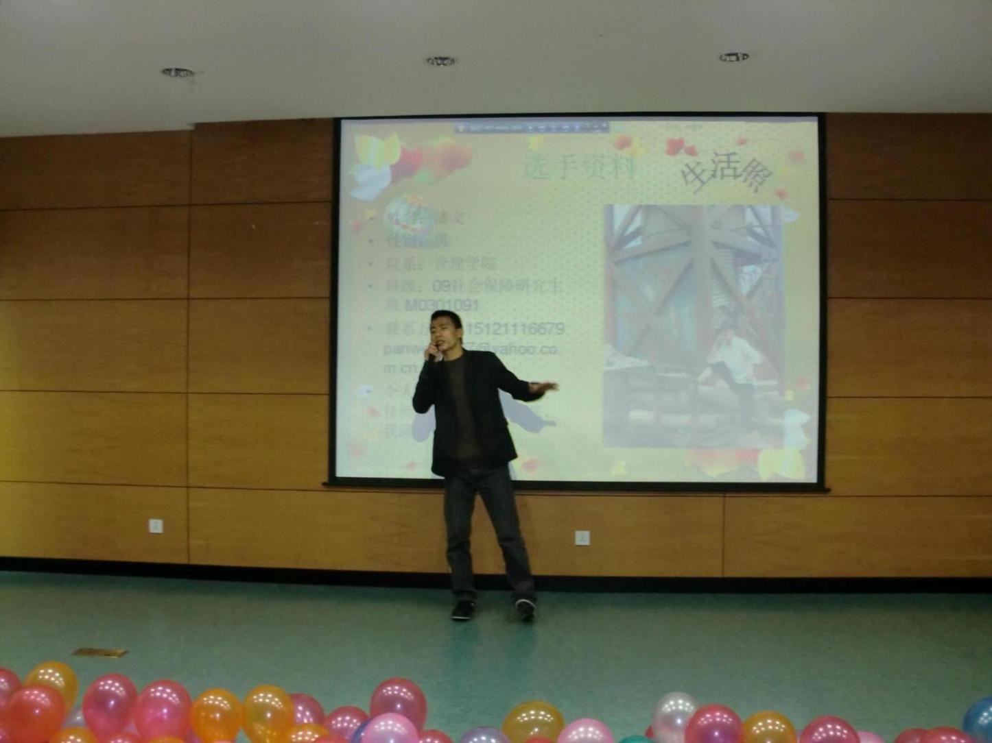 首先,由校研会主席袁裕华宣读比赛规则,随后进入到紧张激烈的比赛环节。选手表现非常突出,现场气氛十分活跃,09级社会保障专业研究生潘文同学的一曲《知足》将大赛推向高潮。 最终,经过激烈角逐,冠军由《知足》的演唱者潘文获得;第二、第三名分别是演唱《可惜不是你》的齐红芳和演唱《不爱我放了我》的顾文俊;同时,潘文夺得了“最佳人气奖”,朱明年 、侯悦夺得“最佳舞台奖”,顾瑶媛夺得“最佳创意奖”。 最终,经评分得出,本次大赛推选潘文、齐红芳、陈之中、顾文俊、顾瑶媛五名选手,于11月26日代表我校研究生参赛队伍赴上海对外贸易学院参加首届上海高校研究生“唱响思源”校园歌手大赛复赛。让我们继续关注大赛进展情况。 | |