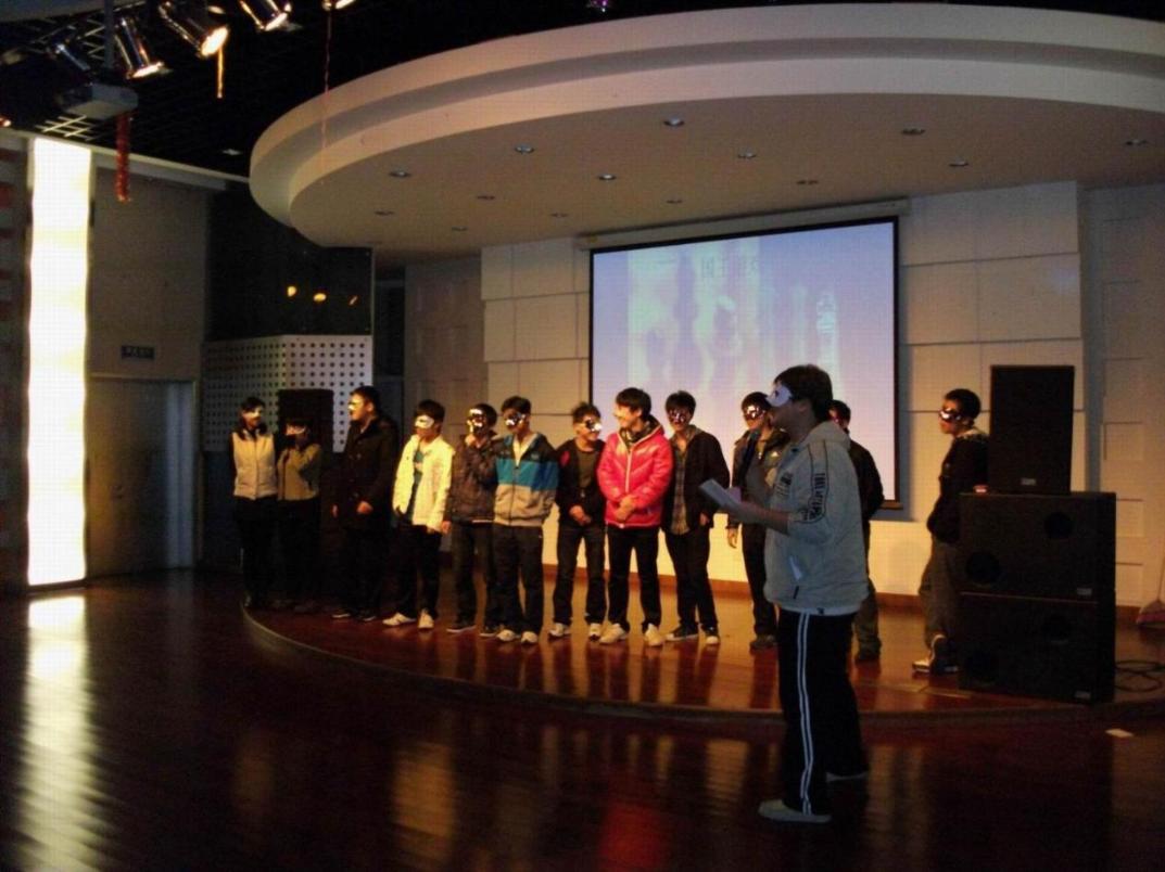 本次晚会全体人员均戴面具出场,正如主持人所说“戴着面具,谁都不认识谁,这样大家就可以在一个陌生的环境中忘记一切烦恼与忧愁,度过愉快的几小时。”伴着清音乐,大家做起了游戏,特别是在一个叫做“国王游戏”的游戏中,上演了一段经典搞笑的猪八戒背媳妇,一个男生背着另一个男生,全场大笑,气氛十分活跃。紧接着,一位帅哥猫步登场,一首“说谎”,伴着那种忧伤的旋律,一句句促人伤感的歌词,再加上那极具天赋的唱功,将内心的苦闷与不满表现的淋漓尽致,全场气氛也随之走向了高潮。最后,在问题讨论环节中,对于爱情与友情的话题,学术部部长发表了个人精辟之谈“爱情很重要,友情也很重要,两者皆为人生之中所无法缺少的”。随后,外联部部长的演唱更让全场沸腾。 这次晚会,不仅丰富了学生的课余生活,更拉近了同学之间的关系,提高了他们的表达能力与语言沟通能力。晚会虽短,但寓意很浓。 | |