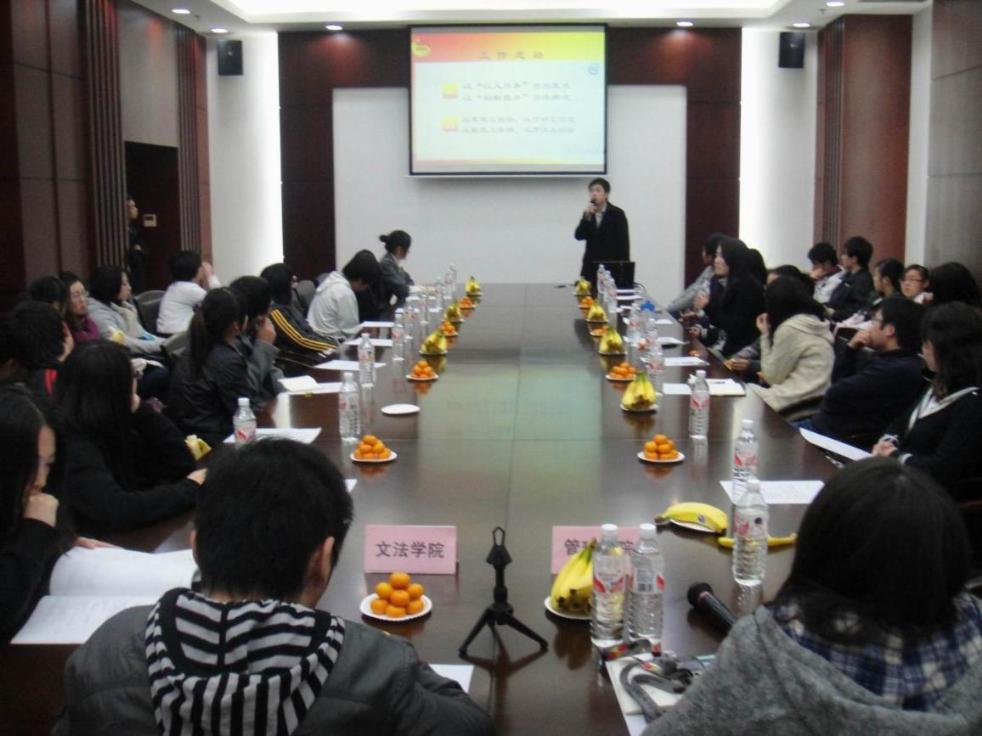 活动伊始,双方与会们分别进行了自我介绍,旨在通过彼此的初步认识拉开活动序幕,使得活动氛围变得轻松。介绍完毕后,管理学院分团委副书记黄梦婷与文法学院学生会副主席分别致辞,他们就“缘”这一话题进行了发言,拉近了两个学院代表们的距离。 活动中,文法学院实践部部长和东道主管理学院分团委副主席余国喜以及秘书处常务秘书陈正浩对学生会建设、团委工作、优秀活动的经验进行了分享,使得双方的同学从彼此身上寻找到了亮点,便于今后工作的顺利开展。正如余国喜同学总结的“求同存异,共同进步”一样。代表们也从文法学院的模拟法庭、迎新汇演、运动会活动和管理学院的模拟面试大练兵、集体舞大赛等活动中发现了共同点。双方辩论队也借由此次交流会展开了讨论与学习,如文法学院的新生杯辩论赛进半决赛等事迹都是双方需要互相切磋的。 最后一个环节——自由交流将活动推向了高潮。管理学院各部门的同学纷纷向文法学院的同学们请教一些不同的部门运行理念,同学们的积极参与程度为这次活动的结束画上了圆满的句号。代表们集体在第五报告厅门口合影留念。 此次活动主要目的是为了促进两个学院的交流发展,在今后的活动中取得更进一步的合作学习。通过这一次的交流会,管理学院和文法学院的学生代表们缔结了深厚的友谊,也相信两个学院在今后一定会有更加密切的联系与发展。 | |