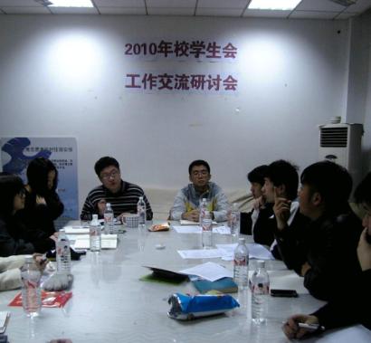 |  12月15日下午5点,2010年校学生会工作专题研讨会在师生活动中心A310举行。此次会议由校学联秘书长王佳杰老师主持,校学生会主席郭谦同学和学生干部们出席了会议。此次研讨会在一年学生会工作的基础上,围绕“十二五”开局之年和庆祝“建党九十周年”的校学生会工作重心,以汪校长在开学初提出的“十个一”为工作目标,群策群力,交流畅想下一阶段校学生会工作。 研讨会开始,校学生会各部门首先总结汇报了一年工作情况,认真分析了工作中的亮点和有待改进的地方。接着各部门就学生会干部培养、宣传工作体系、校院两级交流活动、校园文化建设等主题进行了研讨。研讨过程中,校学生会主席郭谦同学以一名大四学长的经验之谈希望校学生会干部们能认真做好个人发展规划,认真处理好工作和学习的关系,更好的为学生会服务。 王佳杰老师希望学生会能在一年充实的工作基础上,更好的总结与学习,多“走出去”,多“请进来”,完善学生会培养学生骨干、丰富校园文化生活的职责。 仅2010年下半年,校学生会各部门在老师的要求和自发组织下,共开展高校校访和专题调研近20次,为学生会的发展和新干部的学习培养提供了很好的平台。王佳杰老师希望校学生会以庆祝“建党九十周年”为契机,校学生会将继续深入整合资源、打造品牌项目,更好的契合学校的发展目标,为工程大学子提供更好的服务。 随后,校学生会各部门部长认真完成了本年度学生干部年终考核的自评部分。