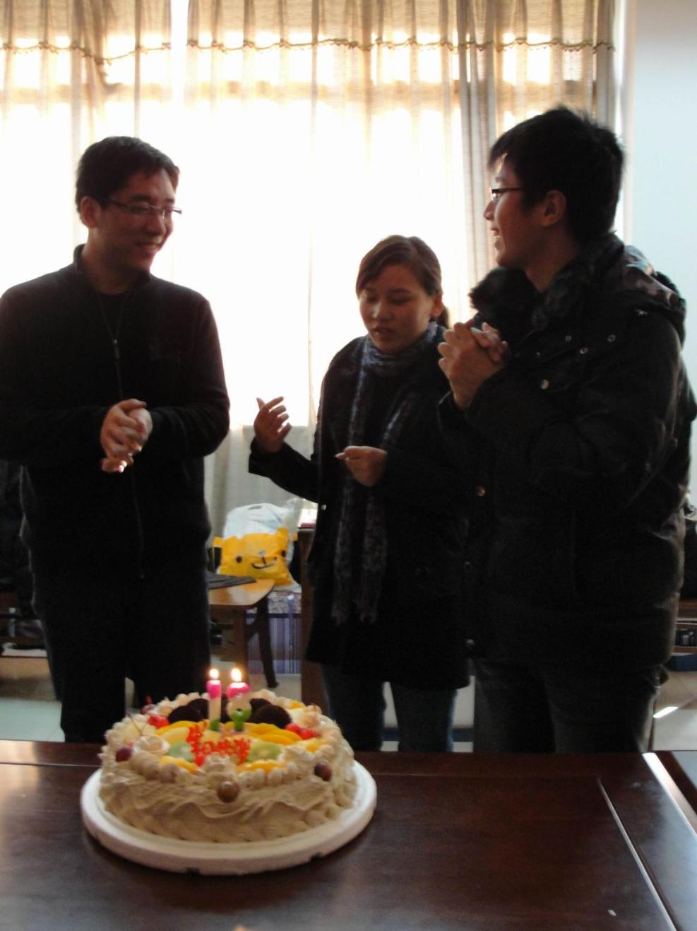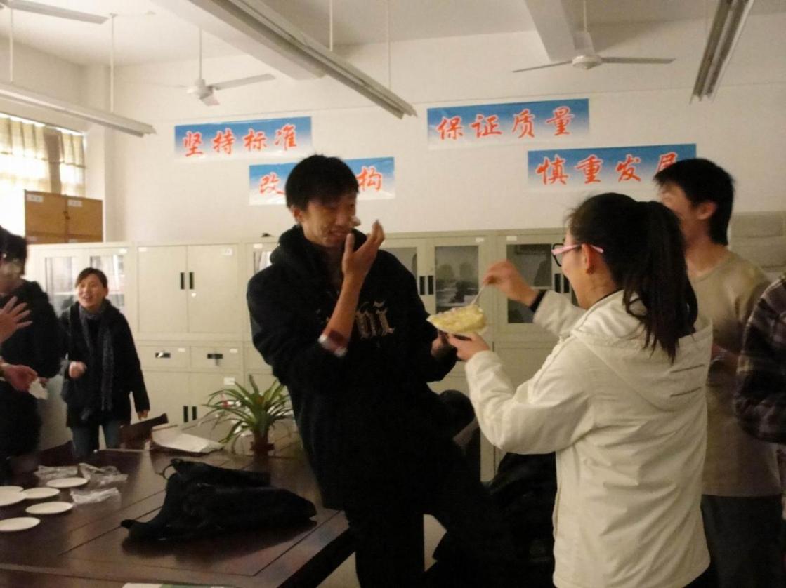 随着一首生日快乐歌,王健同学捧着大家早就准备好的蛋糕来到林老师面前给了他一个生日惊喜。生日蛋糕上,学生们特地插了“18”字样的蜡烛,代表着大家希望林老师永远年轻的美好愿望。在林老师许下自己的生日愿望之后,分团委副书记周凯便将一朵奶油裱花贴在了林老师额头,随后,一场奶油大战便开始上演。师生们互相在彼此脸上抹奶油,“战况”激烈,大家笑声连连。最后,在上课铃声即将敲响时,学生们才纷纷依依不舍地离开了办公室,结束了此次生日会的庆祝。 航空运输学院·飞行学院团学联一直为营造融洽、团结的工作氛围而不断努力。借助类似生日会这样的集体活动,学生们在得到欢愉的同时也增进了团学联整个团队的凝聚力,学生干部们都纷纷赞成这样一种互动交流的特别方式。 | |