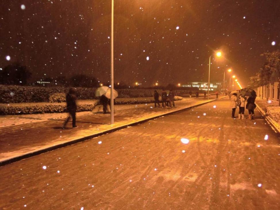 只见学校校园里雪花纷飞,草地上堆起了一个个雪人,还有许多玩闹的身影在打着雪仗。马路上,车辆慢行,行人零星,皆做悠闲赏雪状。宿舍楼区内,还有许多同学从寝室拿出盆子等工具,堆出了一个大大的雪人,玩乐、欢笑,享受着这难得的美好时光。 这场雪,不仅净化了空气,更让上海的同学们真正的享受了雪的乐趣,愿这大自然的馈赠能够带给人们更多的欢乐。 | |