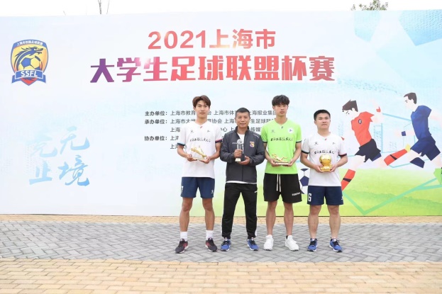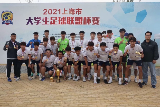 5月21日,由上海市教育委员会、上海市体育局和上海报业集团主办,上海市大学生体育协会和上海市大学生足球联盟承办的“2021上海市大学生足球联盟杯赛”在上海市民体育公园落下帷幕。我校高水平足球队摘得2021上海市大学生足球联盟杯赛超级组冠军,云志海荣获最佳运动员,曹鸿杰荣获最佳射手,葛晋杰荣获最佳门将,王晓忠教练荣获最佳教练员。