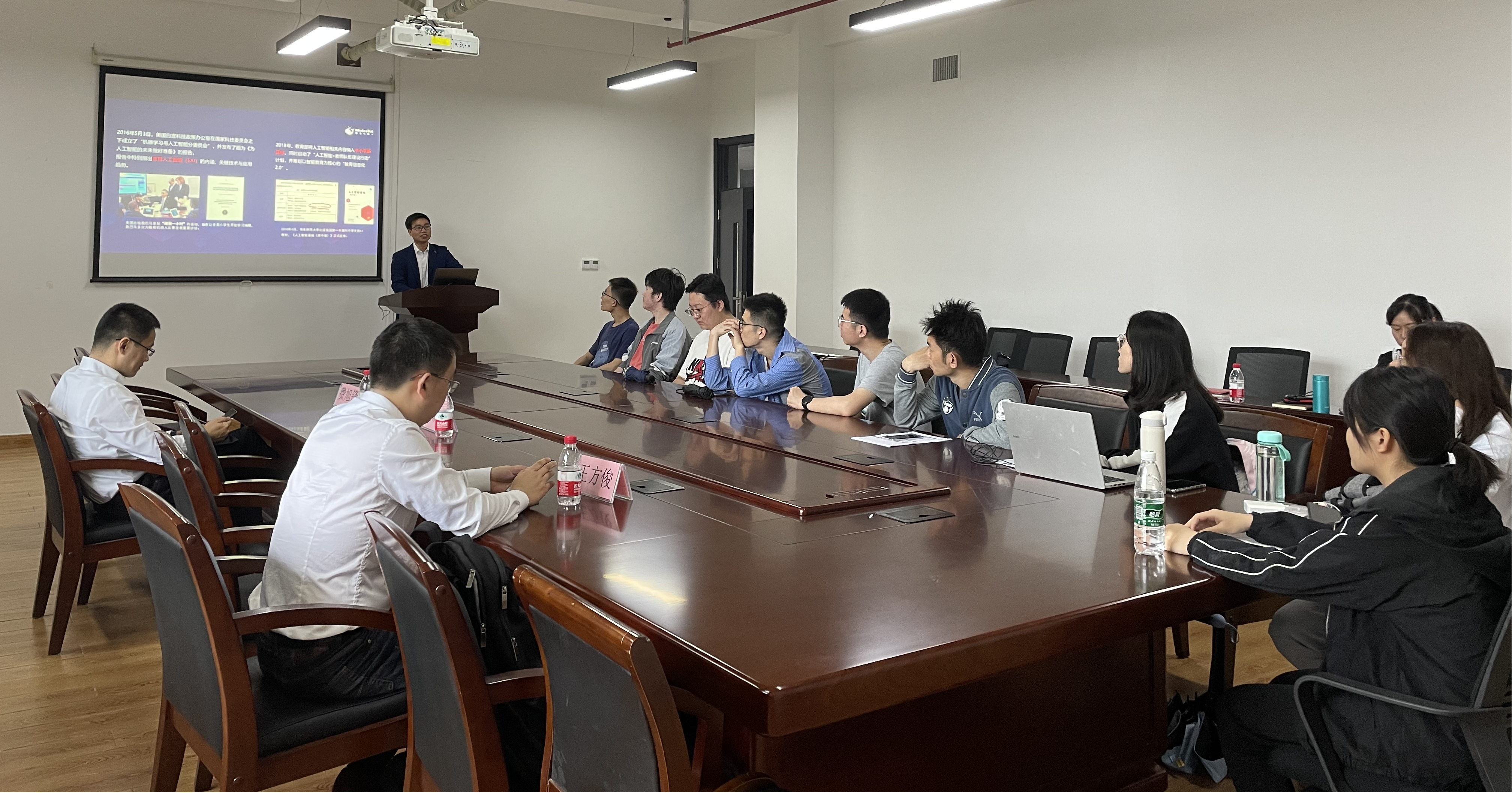 在交通大楼8B604会议室,鲸鱼机器人大区营销总监蒋友利向参加企业宣讲会的学生介绍了行业前景、公司发展情况、业务布局、产品体系等。企业CEO费旭峰对我校学生的综合素质能力给予了高度肯定,开展了现场就业面试,并就应聘学生对行业发展的疑虑进行了详细解答,为后续校企长期深入合作发展方向提供了思路。