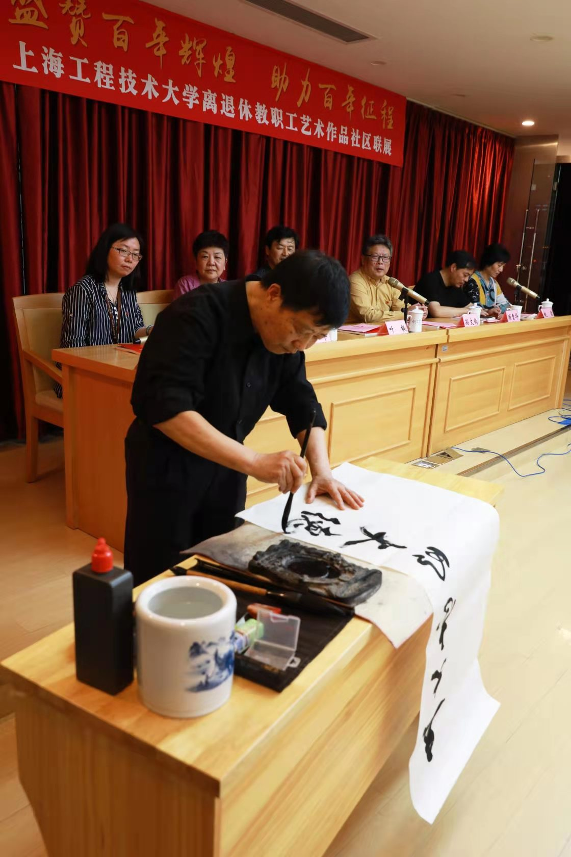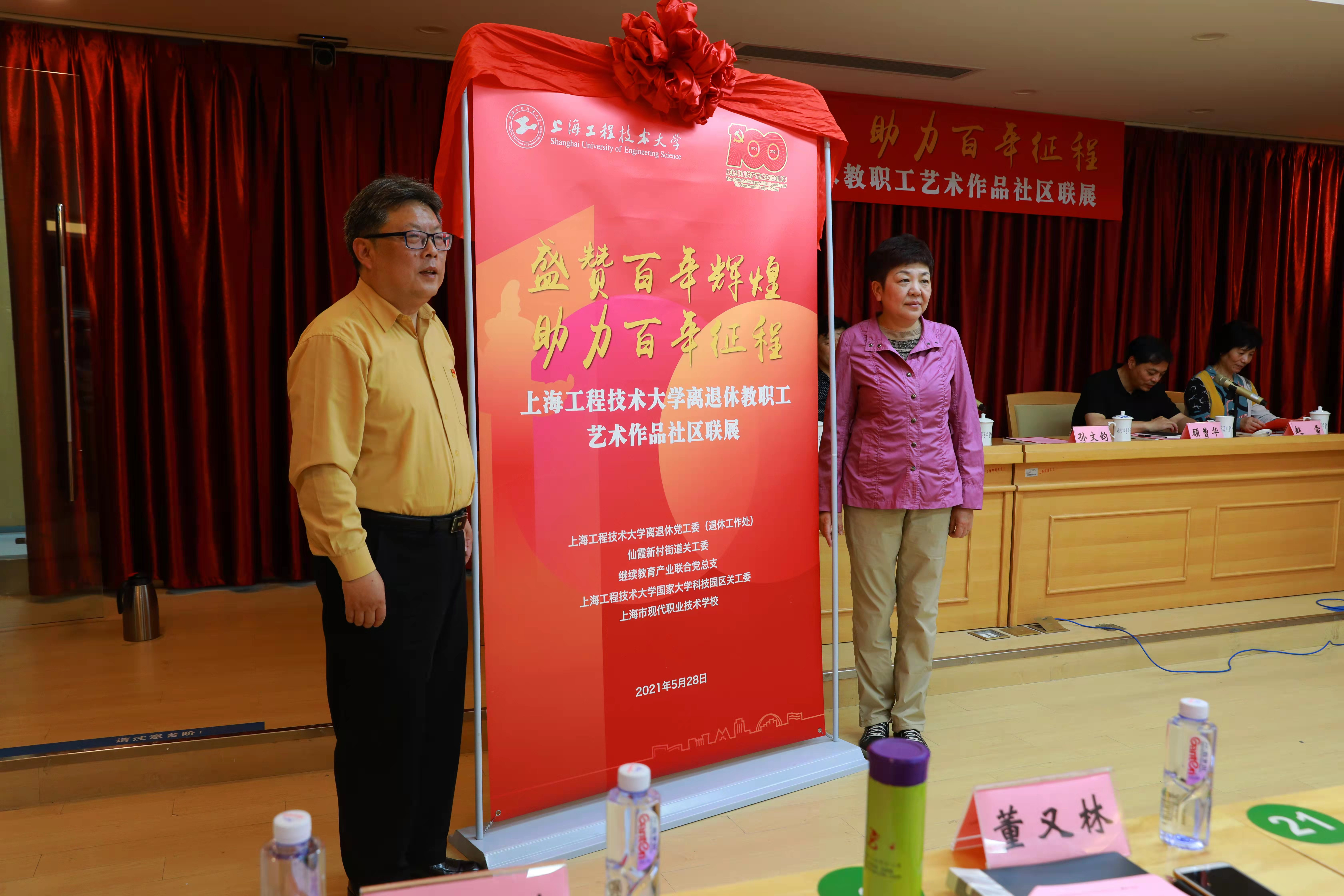5月28日,由离退休党工委(退休工作处)、老干部办公室、继续教育产业联合党总支、科技园区关工委和仙霞新村街道关工委、上海市现代职业技术学校联合举办的“盛赞百年辉煌、助力百年征程”上海工程技术大学离退休教职工艺术作品社区联展揭幕仪式在上海市现代职业技术学校举办。