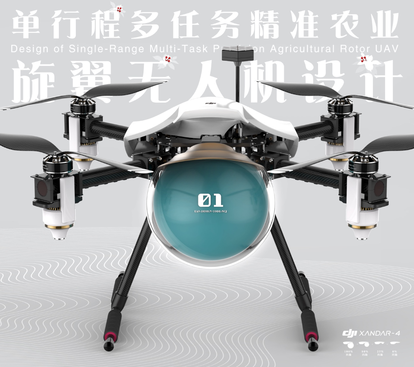 高瞩教授项目理念基于我国精准农业设备良莠不齐的现状,对现有航空技术在农林业上的应用进行查阅和分析,完成了无人机的结构改良设计、空气动力学外观设计以及单行程多任务的路径规划设计。