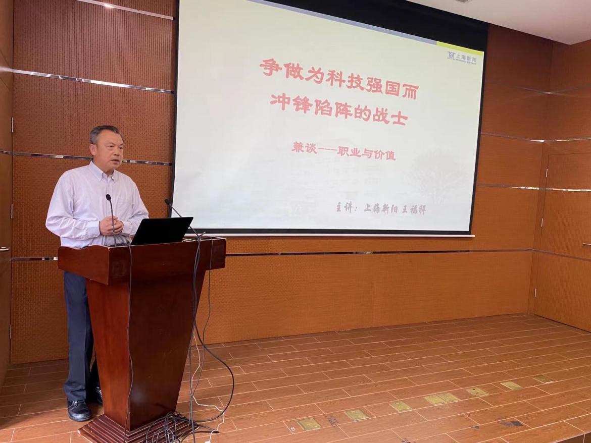 王福祥董事长以“争做为科技强国而冲锋陷阵的战士——兼谈职业与价值”为主题作了招聘动员。他从如何做好职业定位、确定职业方向、明确职业目标三个方面,希望同学们科学做好职业规划。在国际竞争日趋复杂的局势下,面对实现中华民族伟大复兴的光荣使命,他呼吁青年大学生自觉树立责任意识,主动培养高尚道德情操,在推动国家科技发展之际,攻坚克难,争做勇往直前的“战士”!