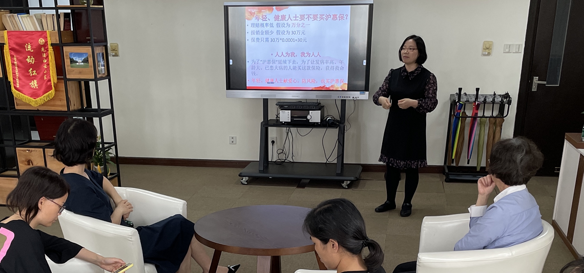 此次讲座由管理学院应用经济系袁芳英副教授为广大教职员工讲解沪惠保、基本医疗保险、上海市教师医疗保险、商业医疗保险的保障范围、适用对象、互补关系,以及规划购买医疗保险的原则和方法。并特邀了新华保险的理赔员作为保险公司代表解释保险公司具体理赔及操作流程。
