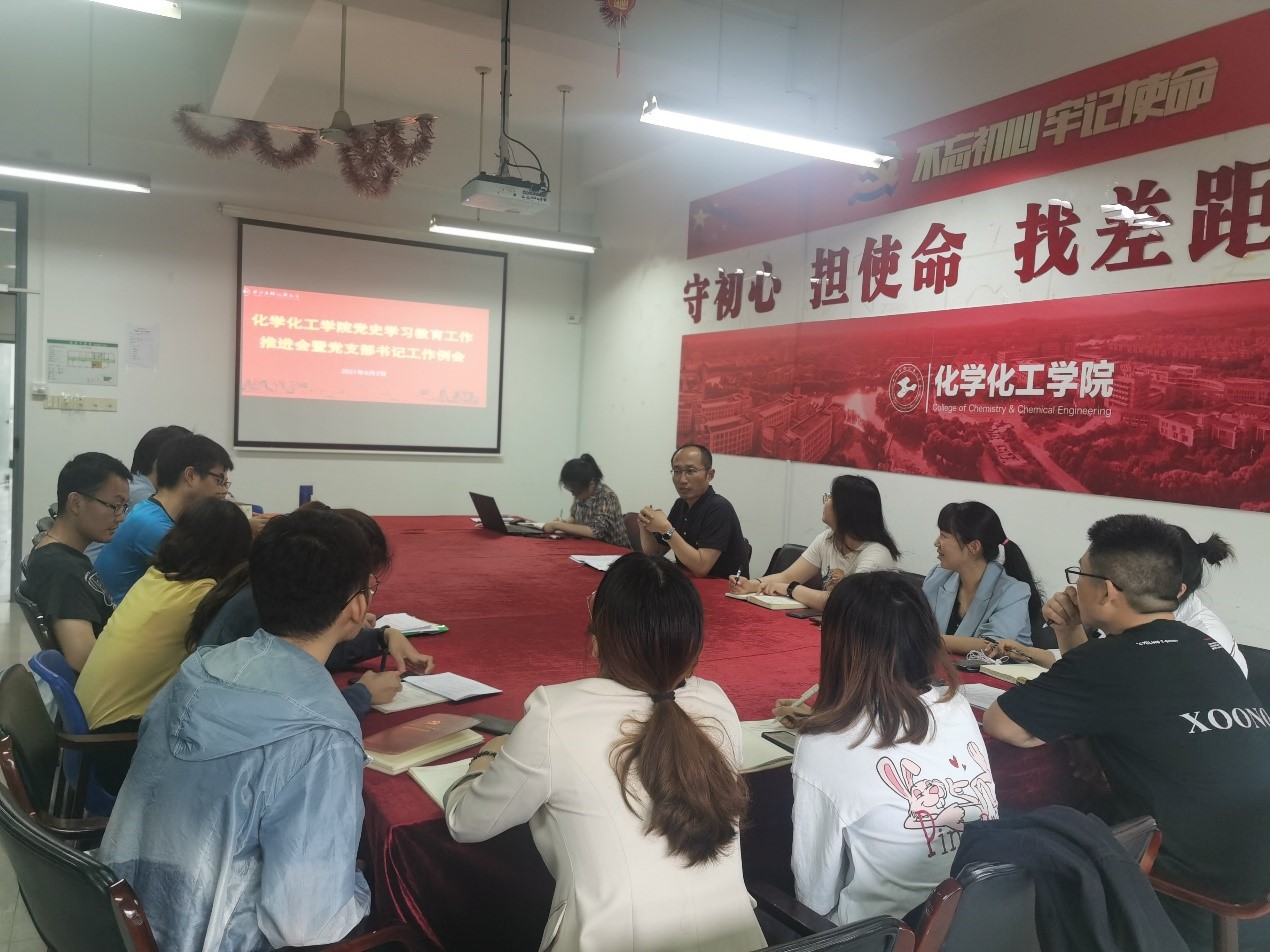 为进一步推进党史学习教育,提升党史学习教育实效,化学化工学院于6月2日下午召开了党史学习教育工作推进会暨党支部书记工作例会,学院党史学习教育工作小组成员、党支部书记和辅导员参加会议。会议由学院党委书记、党史学习教育领导小组组长宋勤健主持。