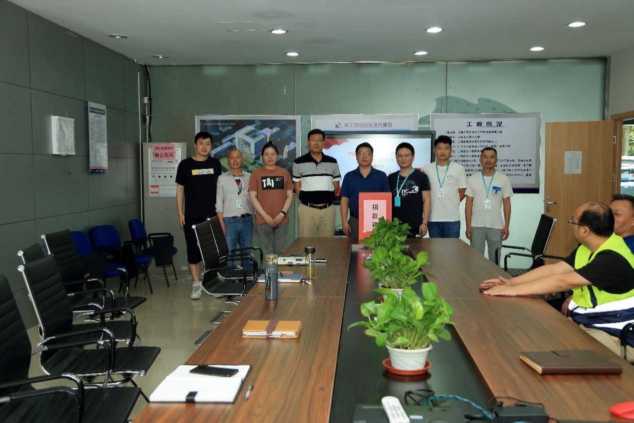 6月1日,基建处在长宁校区产教融合发展工程指挥部会议室举行产教融合发展工程爱心捐赠活动,助力党建共建单位仙霞新村街道虹景居民区疫情防控工作,各参建单位同志依次进行捐款,表达爱心。基建处、上海教育建设管理咨询有限公司、上海建浩工程顾问有限公司、上海建工七建集团有限公司出席活动,活动由基建处长刘国斌主持。