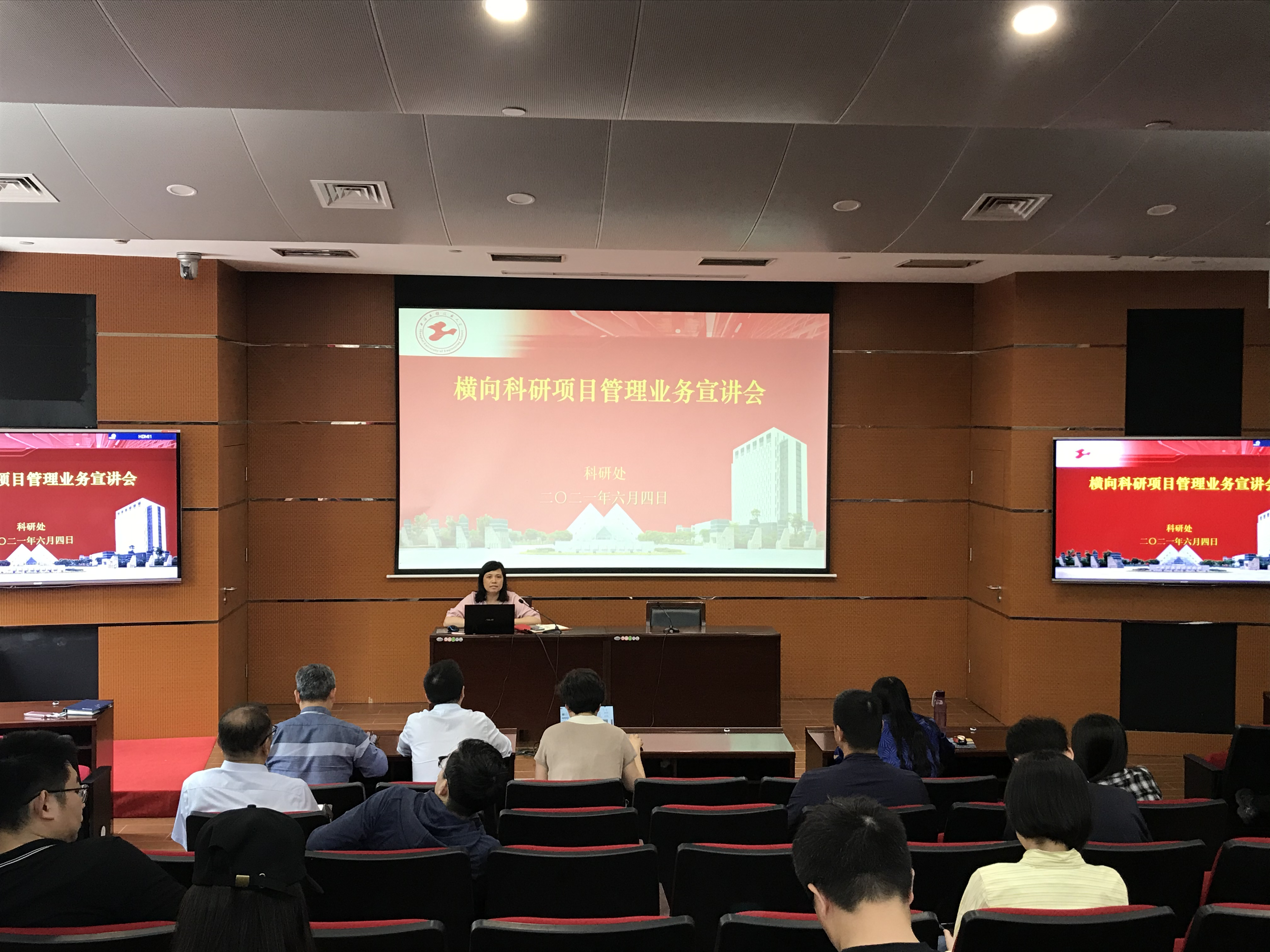 科研处扎实推进党史学习教育,主动将学习教育融入业务管理,为进一步深化“放管服”改革,做好科研管理与服务工作,使广大科研人员能够准确理解和把握科研管理相关政策,经过广泛调研,协调信息办、财务处等相关职能部门,科研处于6月4日在航飞楼一楼报告厅举办横向科研项目管理业务宣讲会,来自各二级部门的科研工作负责人、科研秘书及部分教师参加了会议。