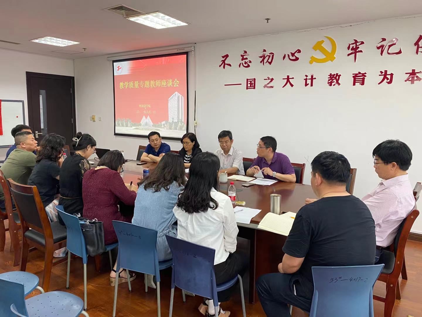 为更好地提高学院立德树人和教书育人水平,了解学院教师对教学质量工作的意见和建议,正确处理好教学管理与服务之间的关系,外国语学院于6月3日下午在行政楼1508会议室召开了教学质量专题教师座谈会,学院领导班子、系部主任、教学秘书和教师代表参加了本次座谈会,座谈会由刘金龙副院长主持。