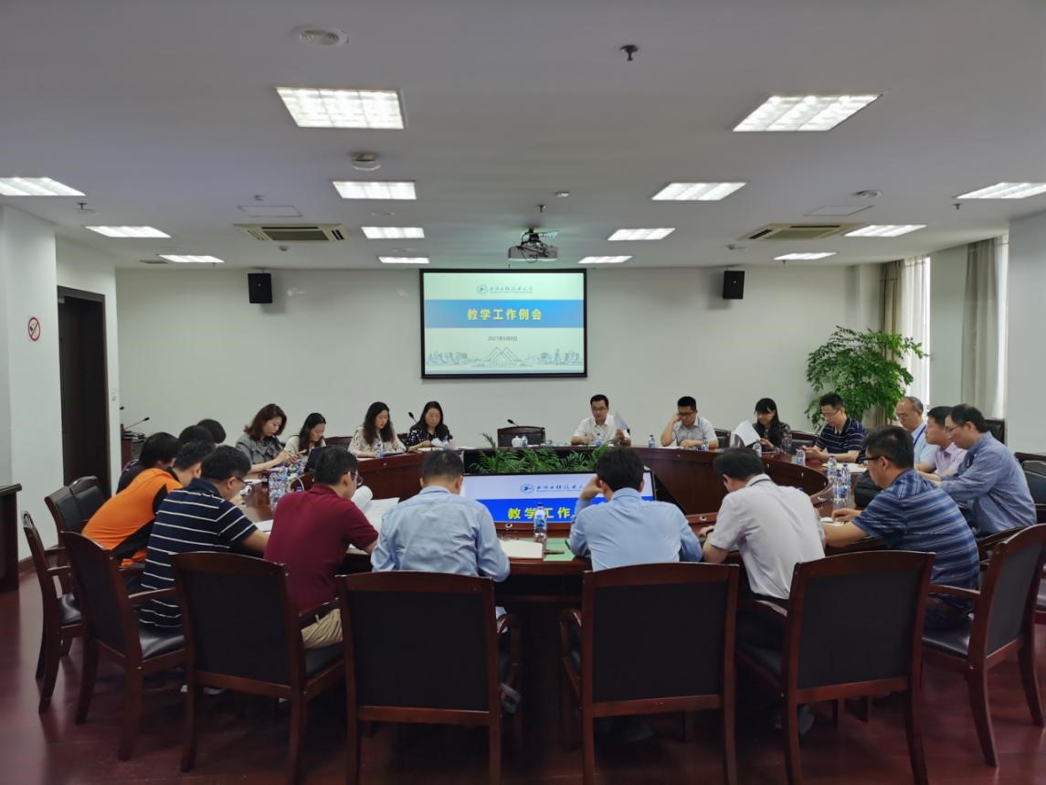 教务处、质量办分管副处长对招生咨询、大学生四六级考试、第二轮选课、2021级培养计划优化、下学期教学大纲修订、青教赛、互联网+大赛、教学资料检查情况等工作进行了通报和安排,各教学副院长(副主任)对相关工作进行了交流。