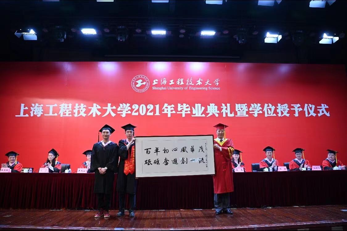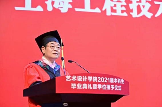 仪式上,艺术设计学院党委书记袁蓉宣读《关于表彰上海工程技术大学艺术设计学院2021年度上海市普通高等学校优秀毕业生(本科)获得者的决定》,学院副院长李光安宣读《关于表彰上海工程技术大学艺术设计学院2021年考取硕士研究生决定》,学院副院长任钟鸣宣读《关于表彰上海工程技术大学2021届优秀毕业设计获得者的决定》,学院副院长刘芹宣读《关于上海工程技术大学艺术设计学院2021年获得学士学位名单的决定》。校领导、学院党政领导和学位评定委员会委员分别为获得上述荣誉的毕业生进行了表彰。