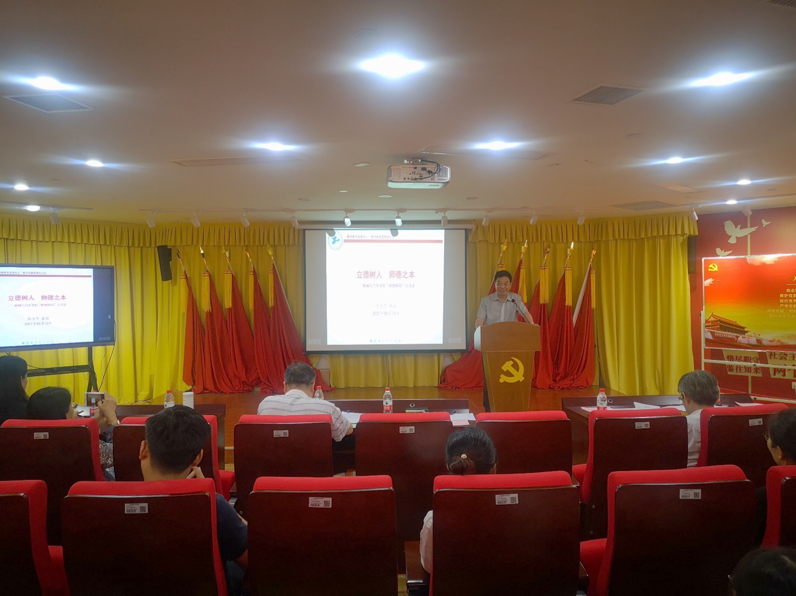 陈力华教授为学院教师作了“立德树人 师德之本”专题报告。他强调,所谓教书育人,既要静下心来教书,又要潜下心来育人。欲树人,先立德;要立德树人,必先立师德。把立德树人作为教育的根本任务,必然要求立德树人成为教师的师范准绳,道德准则。“立德树人”之师,才能无愧于“人类灵魂工程师”。同时,他围绕课程思政的理念、设计、实施与参会老师们进行了分享与交流。