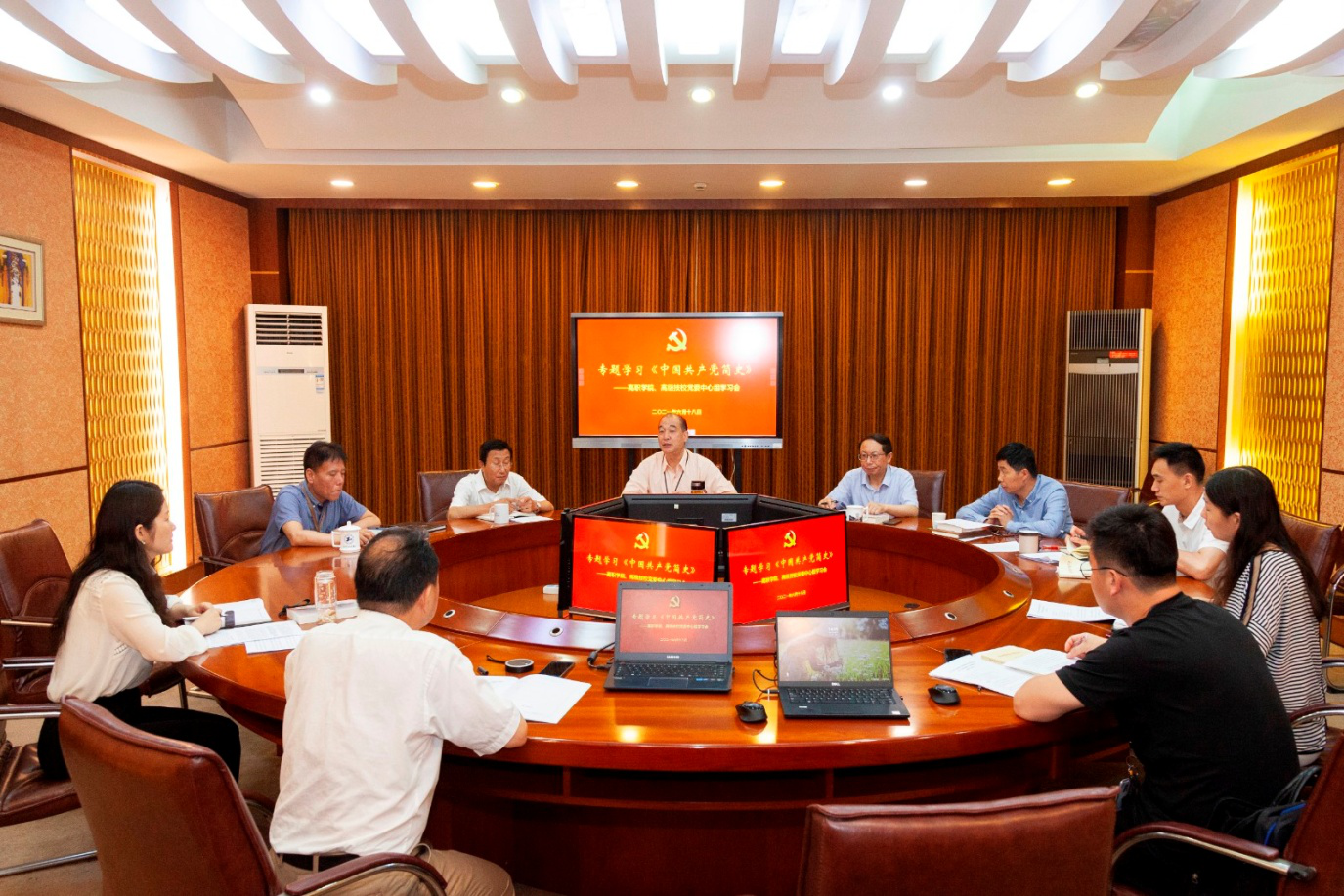 6月18日下午,高职学院、高级技校党委中心组在综合楼911会议室开展《中国共产党简史》专题学习,学院、校党委中心组成员参加学习,学院、校党委书记倪智勇主持会议。