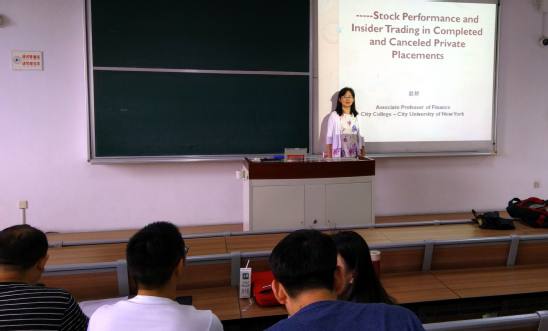 5月31日上午,纽约城市大学赵妍副教授在教学楼F210为管理学院教师及研究生做了题为“内幕交易对完成和取消的私募股权投资的影响”专题讲座。
