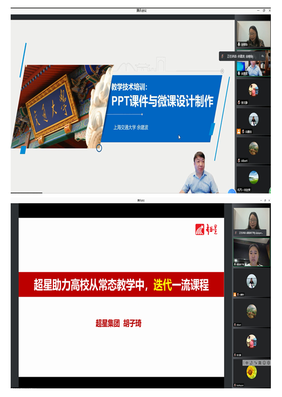 为提高教师教学信息化水平,促进现代信息技术与教育教学深度融合,6月17日,教务处通过腾讯会议组织开展教学技术培训,由上海交通大学在线课程负责人余建波做《PPT课件与微课设计与制作》专题培训,超星集团做《超星平台进阶功能使用》专题培训,为教师开展课堂教学改革提供技术支撑。