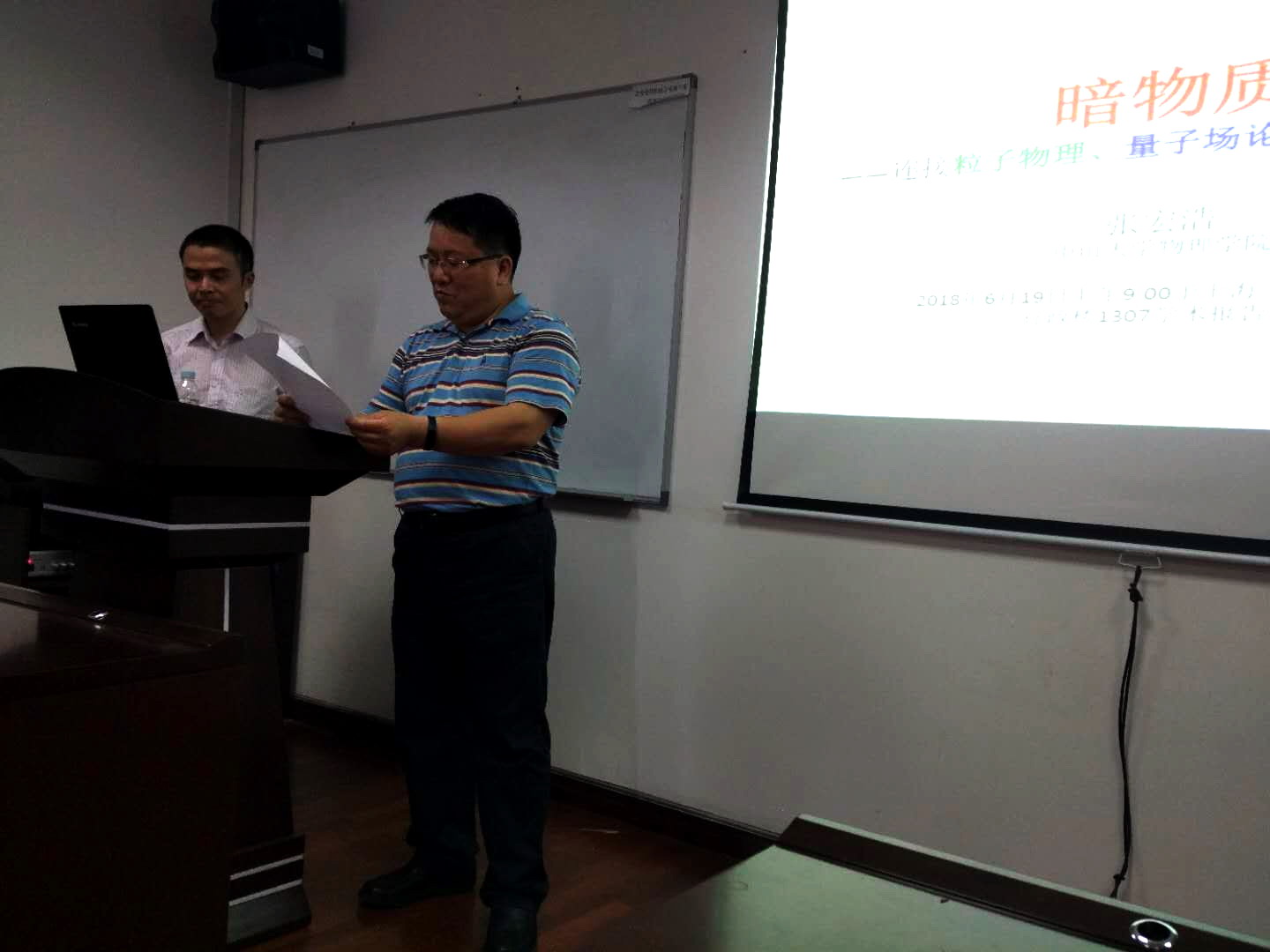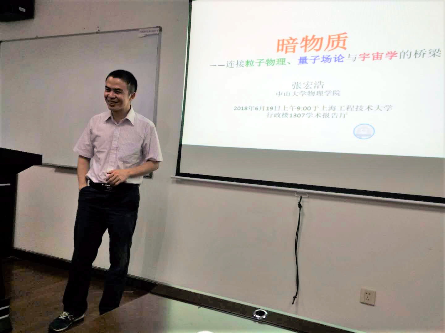 6月19日上午,中山大学物理学院张宏浩教授应数理与统计学院邀请在行政楼1307报告厅为广大师生作题为“暗物质——连接粒子物理、量子场论与宇宙学的桥梁”的学术报告。学术报告会由数理与统计学院院长刘福窑教授主持。