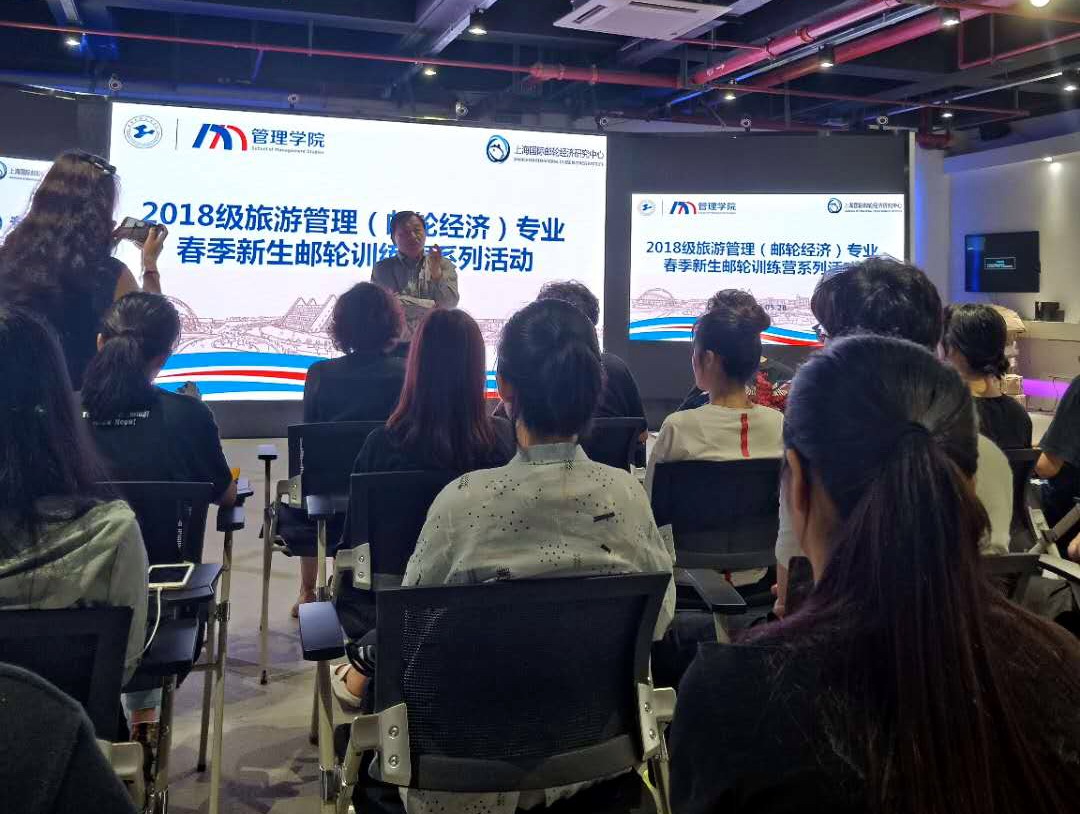 此次系列活动内容丰富,不仅邀请了邮轮专业学科带头人吴明远教授;天海邮轮销售及市场营销高级副总裁徐颖女士;皇家加勒比华东区域销售总监张晨先生、原上海吴淞检验检疫局吴克胜科长;我院2008级校友、上海吴淞口水上旅行社 副总经理秦欣磊小姐等为同学们进行了专业授课。同时还为同学们安排了邮轮实训基地海上安全救生设备演练、普陀山游船实训、无领导小组讨论、美兰湖国际会议中心参观、吴淞口邮轮港顶岗实训等实践环节,也邀请了邻江壹号国际邮轮精品酒店郭敏董事长为学生讲解酒店经营哲学;2012级研究生校友、上海吴淞口国际邮轮港开发有限公司团支部书记蔡二兵为同学们实地讲解了邮轮港基本概况。