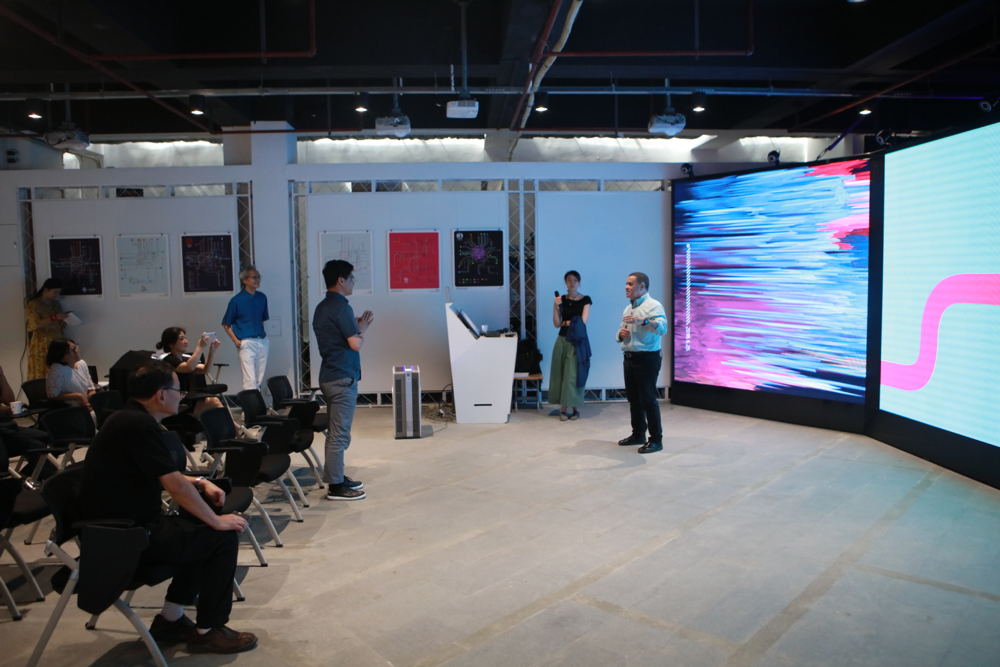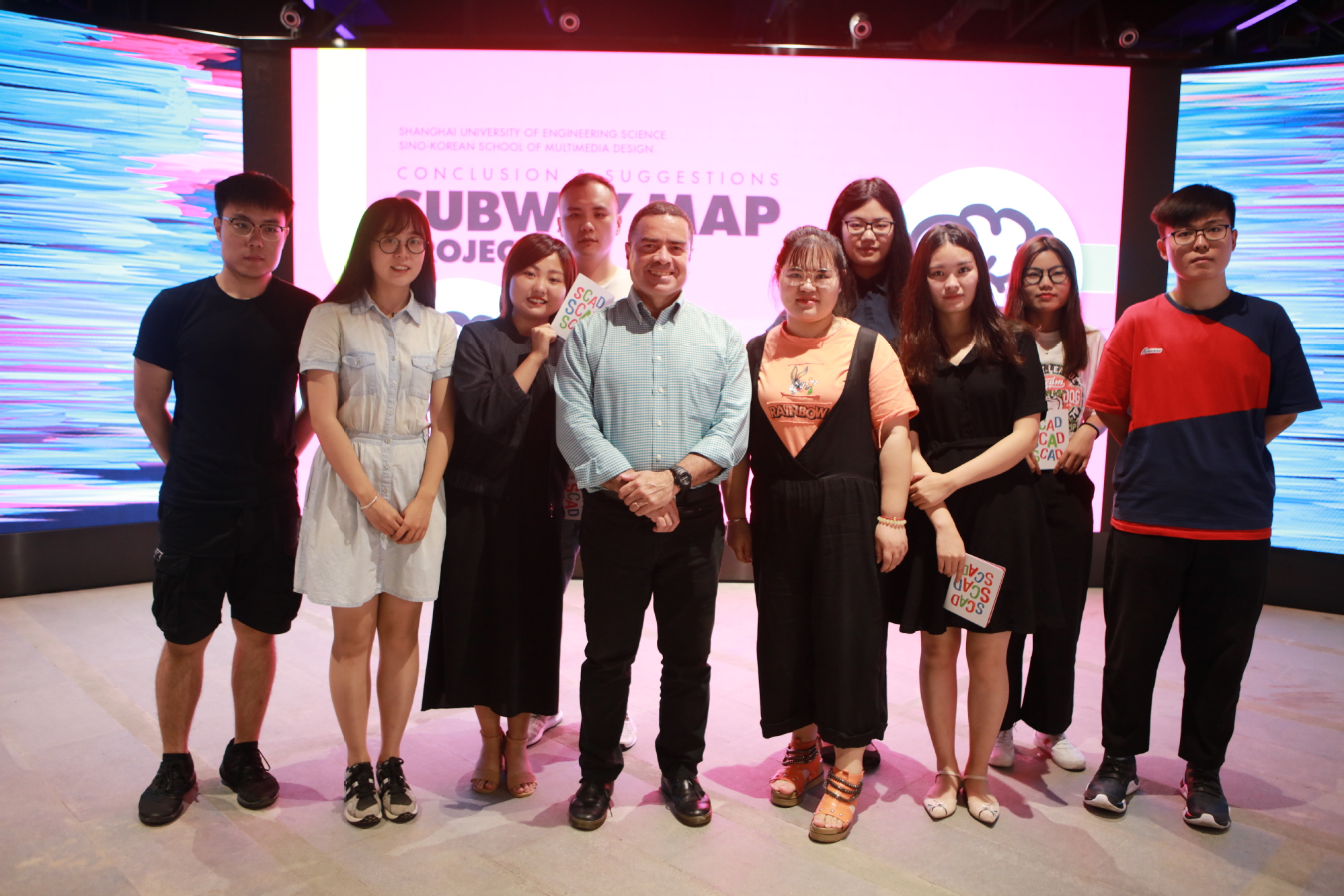 美国萨凡纳艺术设计学院JORGE MONTERO教授以CONCLUSION&SUGGESTIONS SUBWAY MAP PROJECT为主题,以一个国外使用者的角度切入,通过在上海期间实际使用地铁的亲身感受对比首尔、马德里、圣彼得堡等全球各个城市的地铁设计,对于上海地铁信息设计系统提出了一些建议。在过去三周的时间里,MONTERO教授和研究生们通过实地勘测和用户调研,对上海地铁路线以及地铁logo进行了重新策划与设计,研讨中每位同学对于自己重新设计的上海地铁路线和导向系统设计方案进行介绍,并与大家进行方案可行性的研讨和创作分享。