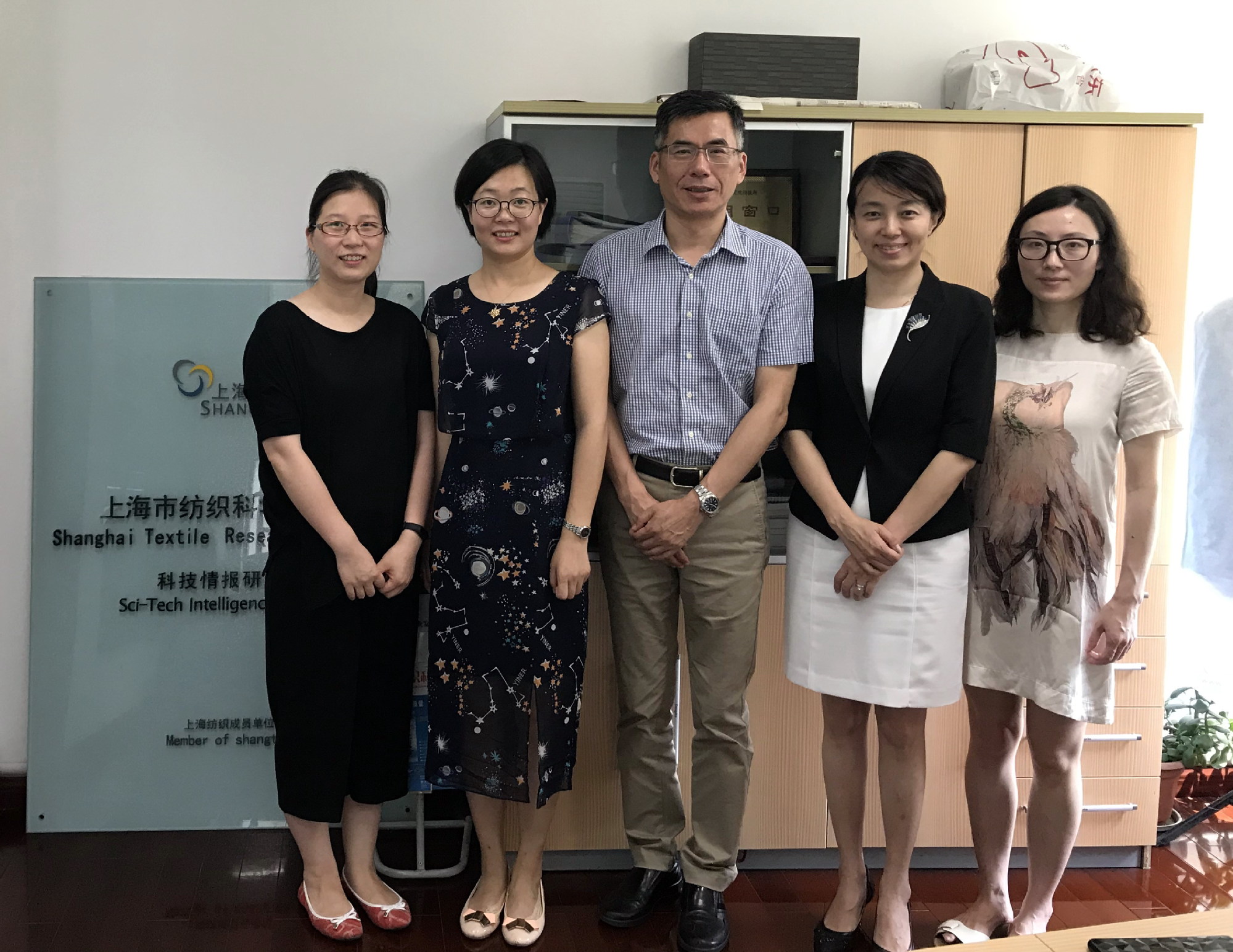 6月26日下午,服装学院党委书记袁蓉、党委副书记谢志霞、学院纺织工程系党支部书记许颖琦、以及校友工作辅导员沈智莉来到上海纺织科学研究院,拜访服装学院优秀校友李勇。