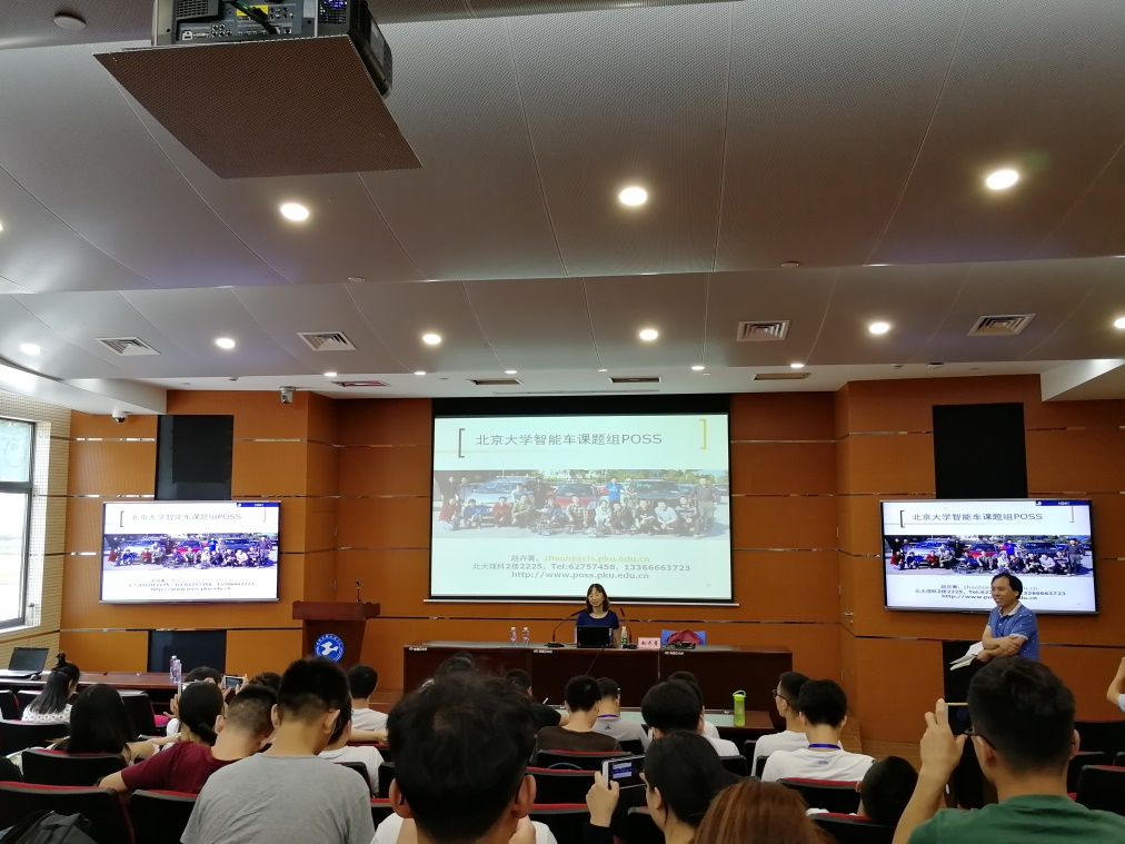 首先,崔国华教授向学员们简单的介绍了赵卉菁博士,她是北京大学信息科学技术研究员,北京大学智能交通系统(ITS)中心副主任,主要研究的领域包括智能感知技术,传感器技术,智能车与移动机器人和智能交通等;随即赵博士开始进行《智能车与轮式移动机器人》专题报告。首先,赵博士介绍了轮式移动机器人,讲述了每种轮式移动机器人的发展史;然后,赵博士对智能车的发展里程碑进行展开描述,DARPA举办的Grand Challenge/Urban Challenge是智能车发展史上的里程碑,实现了车辆在复杂路况下的无人自动驾驶,接着受其鼓舞,全球掀起了无人车研究热潮;接着,赵博士为我们列举了中国智能车未来挑战赛,希望更多对智能车感兴趣的研究者能够参与其中;然后赵博士讲述了无人车移动机器人的关键技术;最后,赵博士向我们展示了各种驾驶平台,比如自动驾驶平台,动态监测平台,以及PSA平台。