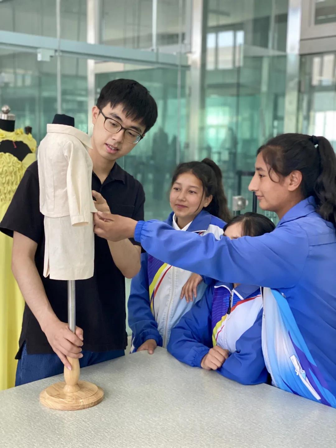 在来到喀什职业技术学院后,董海宇老师发现当地师资团队主要由青年教师组成,专业基础相对薄弱,在高职教学理念、教学设计能力和专业技术水平等方面都迫切需要提升。为此,董海宇老师主动参与到服装结构设计、服装立体裁剪、服装缝制工艺3门难度较大的专业核心课程教学当中,以身试教,组织教师修订人才培养方案,解决了学时分配不合理、专业课程设置不全面、实习实训不集中等一系列问题。
